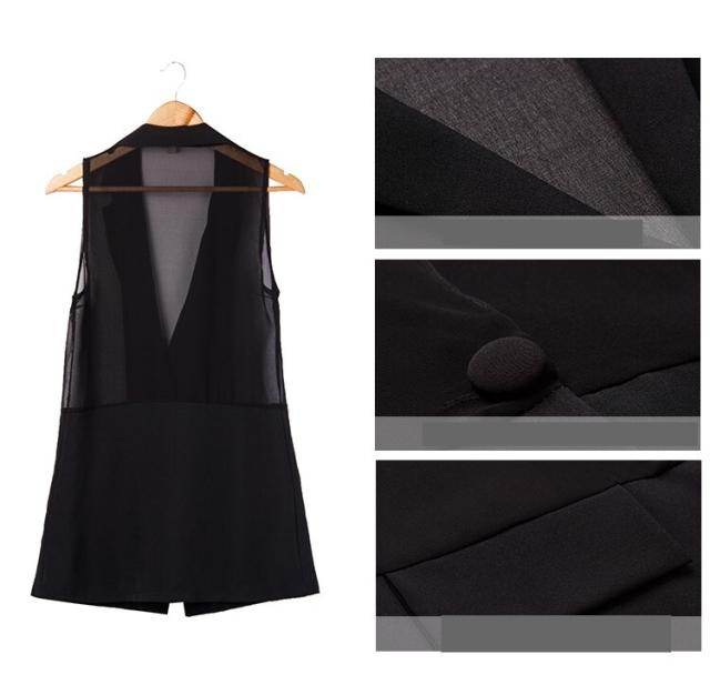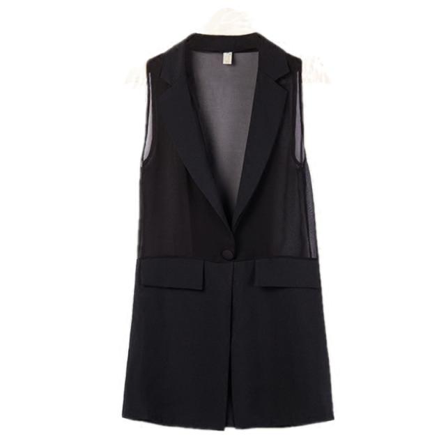 ベスト レディース トップス テーラードカラーベスト テーラード ブラック 黒 大人カラー S M L XL 2XL 3XL 大きいサイズ プラスサイズ Vネック 袖なし レイヤード 重ね着 無地 シフォン シースルー 透け感 春 夏 ロング丈 ロング フェミニン カジュアル ナチュラル きれいめ