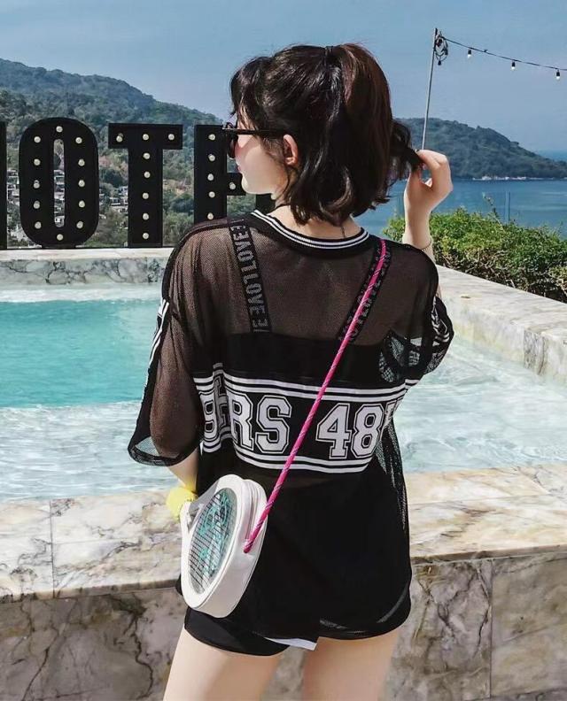 水着3点セット レディース 水着 スイムウェア 3点セット セット セットアップ スリーピース M L XL ホワイト 白 ブラック 黒 モノトーン バイカラー トップス ロゴ プリント メッシュ Tシャツ シースルー 透け感 ライン 半袖 クルーネック ビキニトップ ビキニ タンキニ セパレート スポーティー ヘルシー クール 大人可愛い 美ライン 美シルエット 旅行 海 ビーチ プール ママ 定番 着回し 万能 スタイルアップ 体型カバー 脚長 美脚 さわやか 韓国 オルチャン シンプル ベーシック