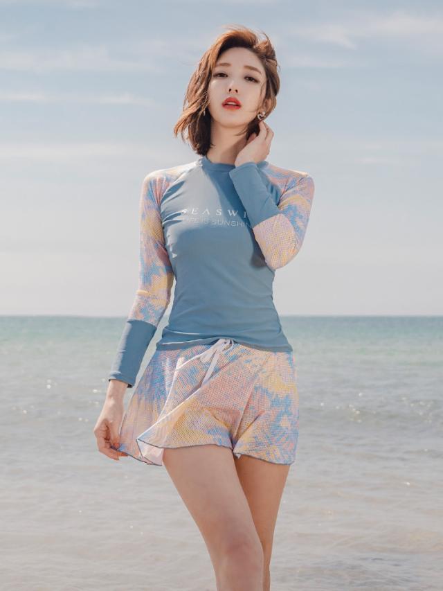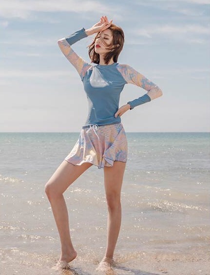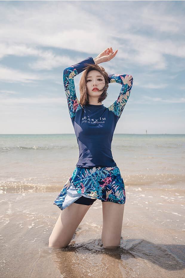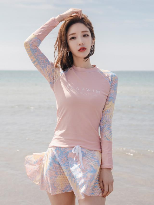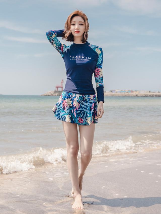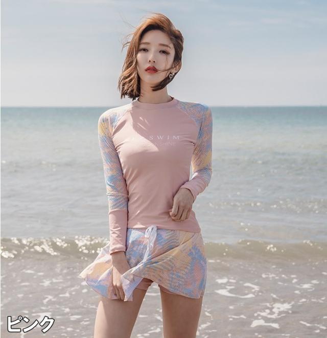 水着2点セット レディース 水着 スイムウェア ビーチウェア セット 2点セット ツーピース セットアップ M L XL 2XL 3XL プラスサイズ 大きいサイズ ネイビー 紺 ブルー 青 ピンク ボタニカル柄 大人カラー パステルカラー 長袖 日焼け防止 クルーネック 脚長 美脚 体型カバー スタイルアップ 着やせ 美ライン 美シルエット ママ ミニ丈 ミニ 膝上 フレア Aライン 海 プール バカンス ビーチ 旅行 フェミニン カジュアル きれいめ スタイリッシュ クール 着回し 大人 大人可愛い