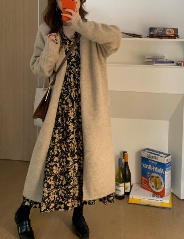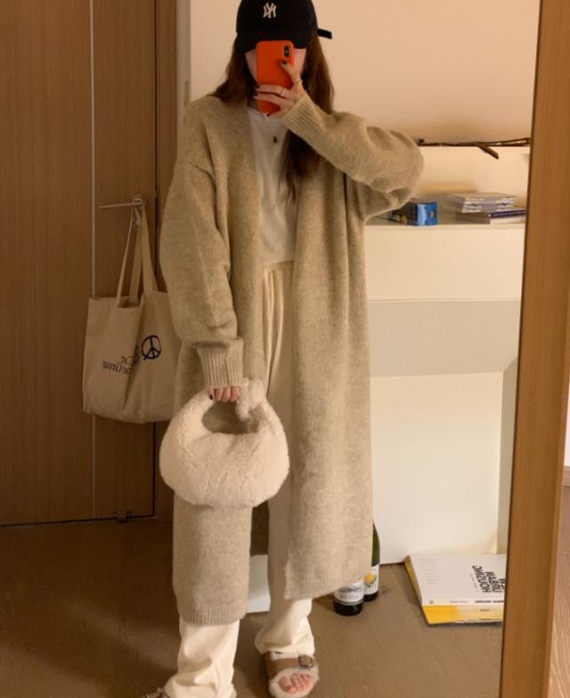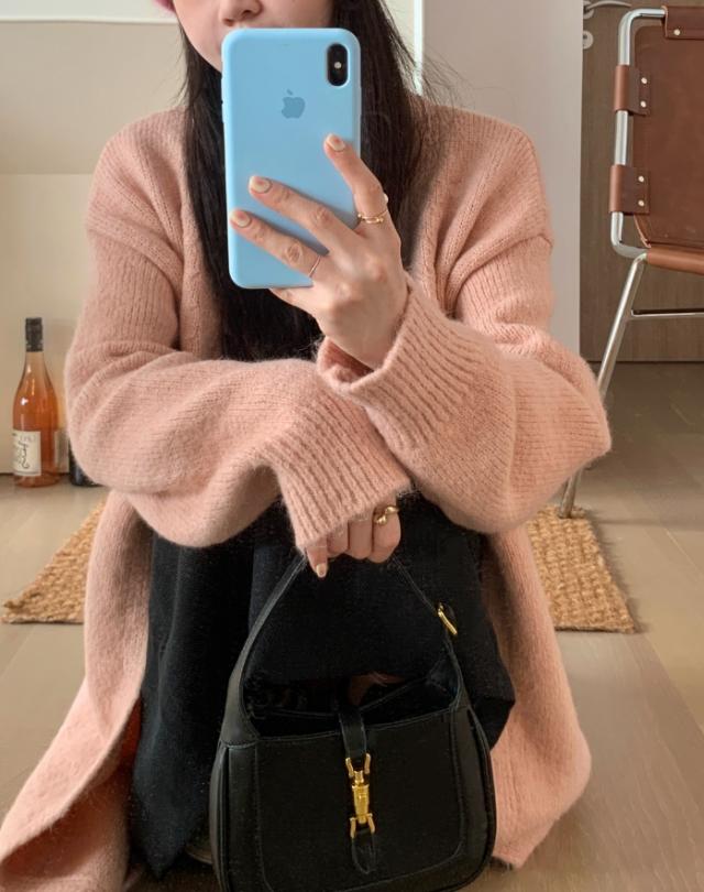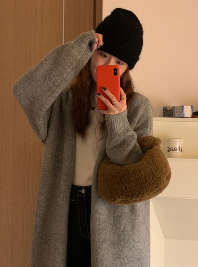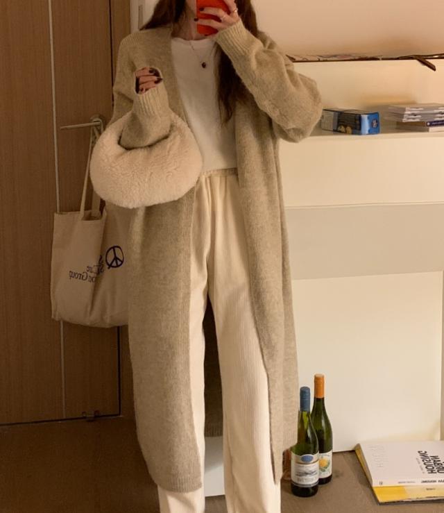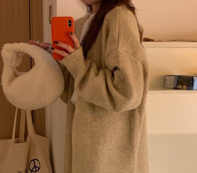 コーディガン アウター セーター カーディガン コート ロング丈 長袖 萌袖 もこもこ モコモコ ふわふわ 大人可愛い きれいめ シンプル カジュアル こなれ感 ラフ ルーズ 無地 秋 冬 デート お出かけ 休日 着回し 普段使い 暖かい モテ ブラウン グレー ピンク