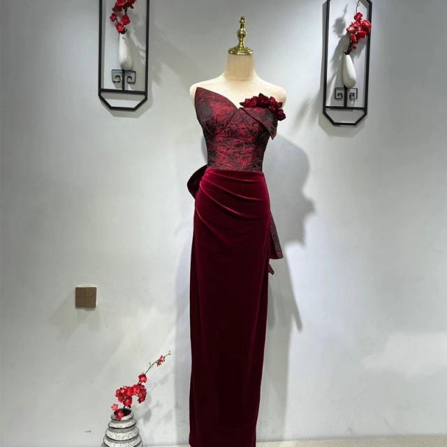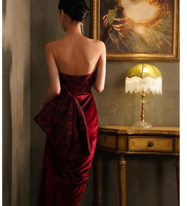 ドレス レディース パーティードレス パーティドレス カラードレス ロングドレス 演奏会用ドレス 演奏会ドレス 発表会ドレス ステージドレス 舞台ドレス Iラインドレス ロング丈 マキシ丈 ノースリーブ 襟なし ビスチェ スレンダーライン 切り替えデザイン ドッキング バックリボン バックシャン ベロア ベルベット エレガント ゴージャス 華やか 大人 上品 おしゃれ クラシック 主役級 存在感 セクシー XS S M L XL ワインレッド 赤 花柄 フラワー ローズ 薔薇 バラ 謝恩会 パーティー