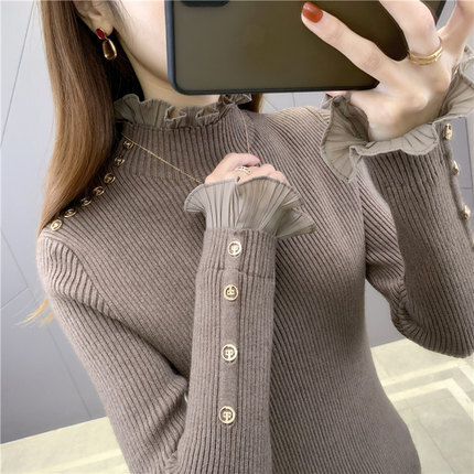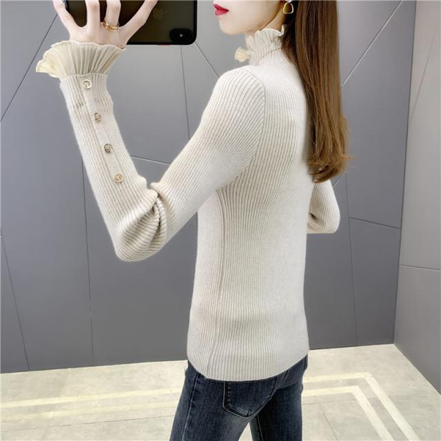 ニットセーター トップス セーター 長袖 タートルネック スリム タイト 細身 フリル フリース 薄手 厚手 かわいい 大人可愛い きれいめ おしゃれ お洒落 大人可愛い 大人女子 無地 秋 冬 10代 20代 レディース デート お出かけ 休日 イベント ホテル レストラン ファッション