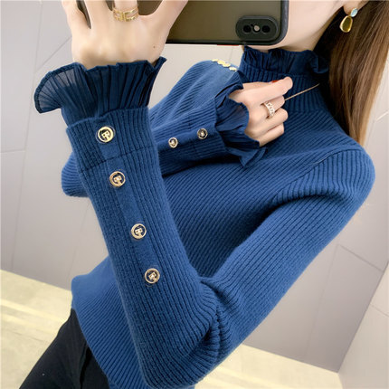 ニットセーター トップス セーター 長袖 タートルネック スリム タイト 細身 フリル フリース 薄手 厚手 かわいい 大人可愛い きれいめ おしゃれ お洒落 大人可愛い 大人女子 無地 秋 冬 10代 20代 レディース デート お出かけ 休日 イベント ホテル レストラン ファッション コーデ スタイル S M L XL 黒 ブラック 青 ブルー 茶色 ブラウン ベージュ