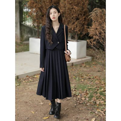 セットアップ スーツ ロングワンピース 2点セット レディース ジャケット アウター トップス プリーツ ロングスカート ロング丈 ミモレ丈 ショート丈 ショートジャケット 長袖 Aライン 高級感 エレガント お洒落 オシャレ 上品 きれいめ こなれ感 制服 秋 冬 春 入学式 卒業式