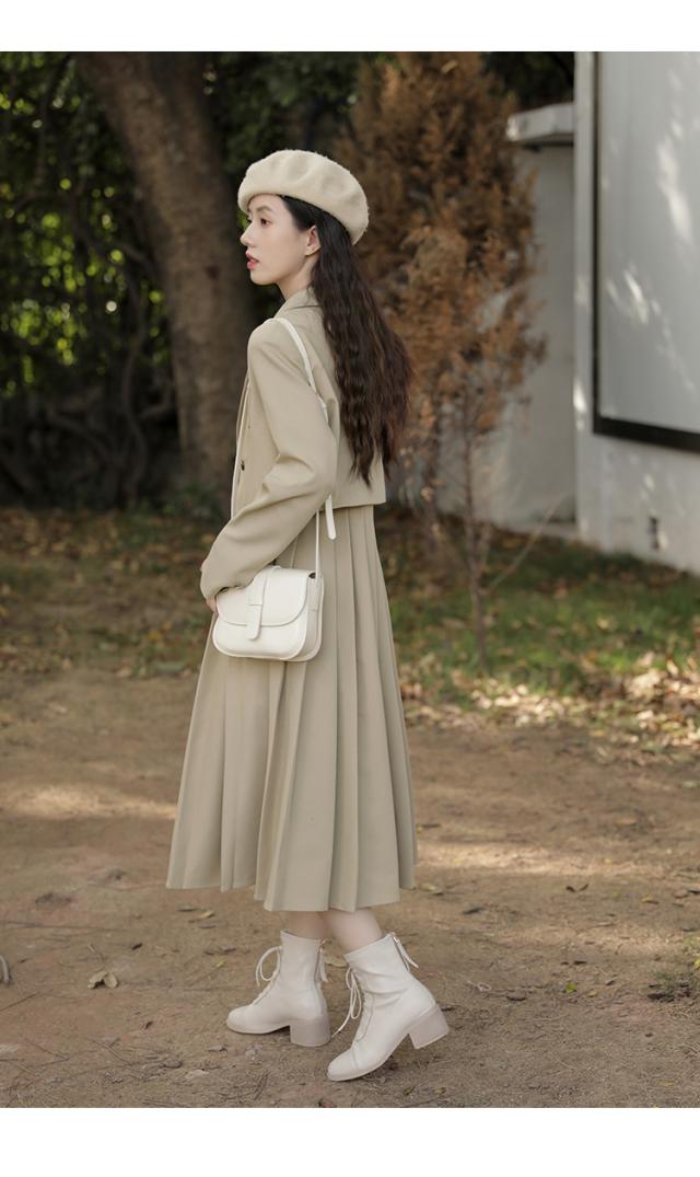 セットアップ スーツ ロングワンピース 2点セット レディース ジャケット アウター トップス プリーツ ロングスカート ロング丈 ミモレ丈 ショート丈 ショートジャケット 長袖 Aライン 高級感 エレガント お洒落 オシャレ 上品 きれいめ こなれ感 制服 秋 冬 春 入学式 卒業式 発表会 パーティー お呼ばれ ハイウエスト 細見え 着痩せ 無地 シンプル かわいい 大人可愛い 仕事 オフィス ОL 20代 30代 40代 ベージュ 黒 ブラック ネイビー 個性的 個性派