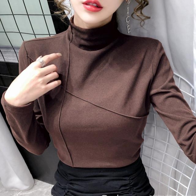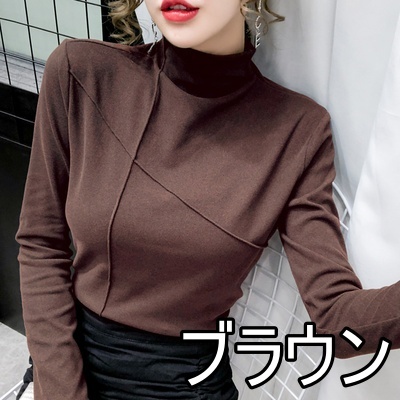 長袖 カットソー 8色 ハイネック レディース トップス タートルネック タイト スリム 細身 大きいサイズ 大きめ XL 2XL くすみカラー お洒落 オシャレ 着回し 秋 冬 春 タック 20代 30代 40代 50代 シンプル 無地 カジュアル きれいめ 上品 クール 暖かい 茶色 ブラウン 黒