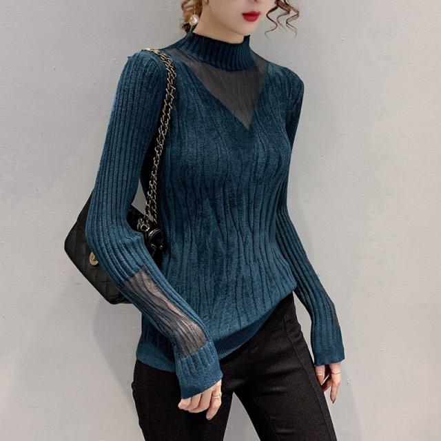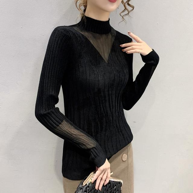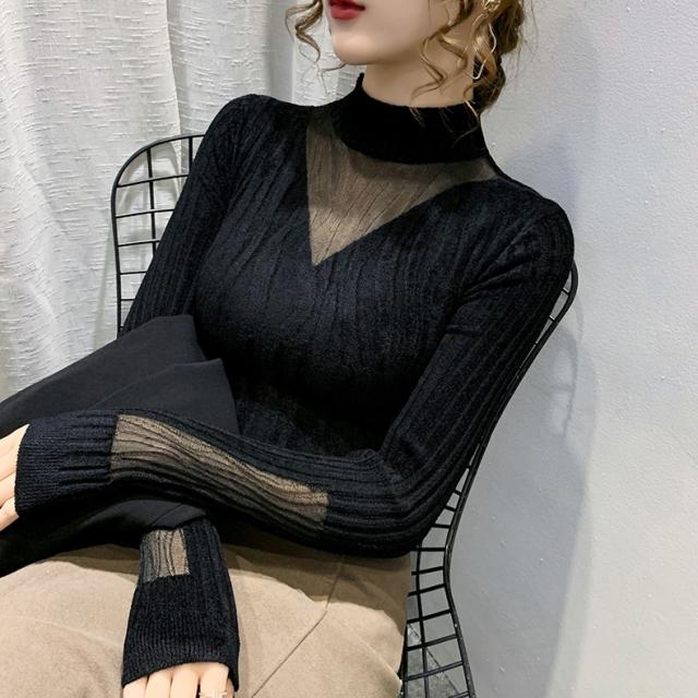 ニットソー ハイネック Vネック 透け感 長袖 レディース トップス ニット カットソー タイト スリム 細身 秋 冬 春 大きいサイズ 大きめ XL オシャレ お洒落 かわいい 大人可愛い 大人女子 セクシー 色っぽ トレンド 韓国 流行 くすみカラー 暖かい こなれ感 抜け感