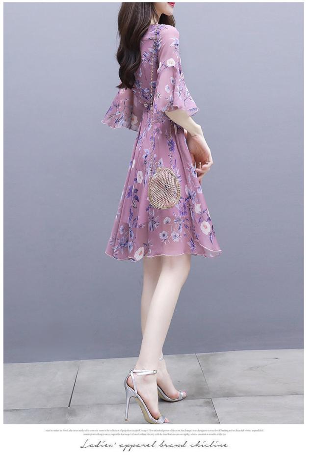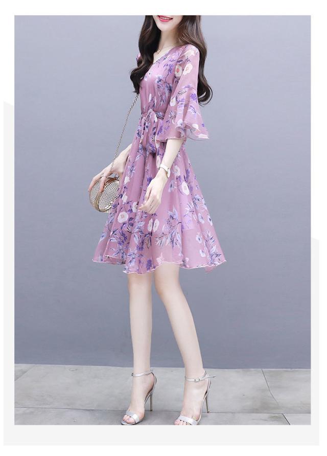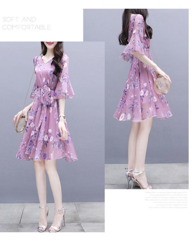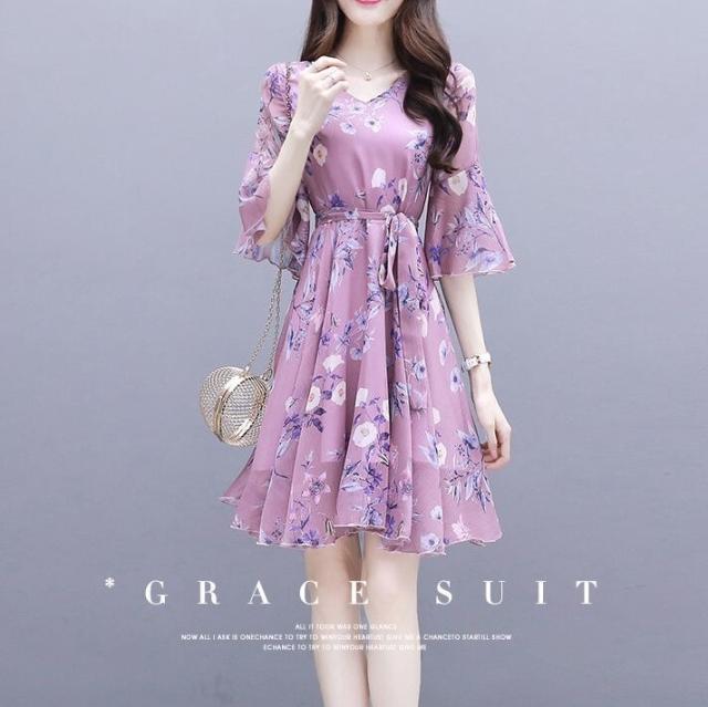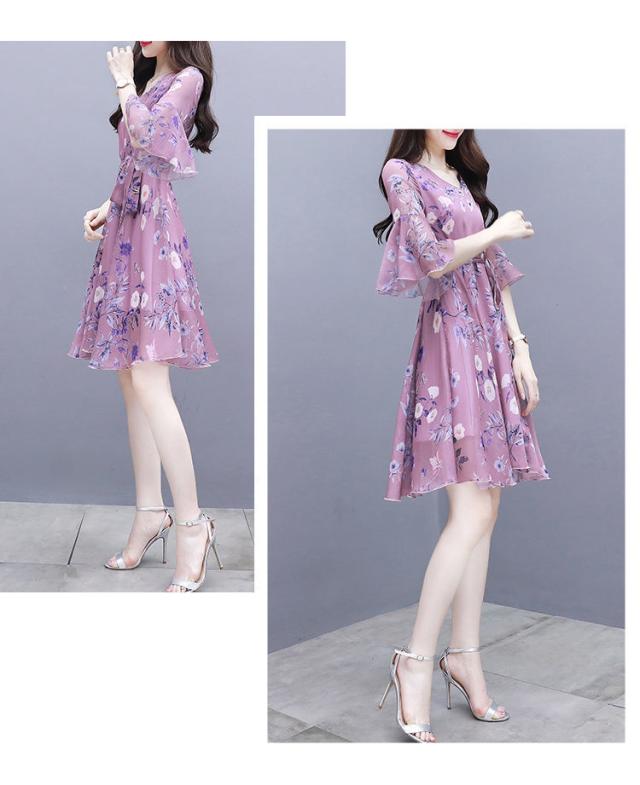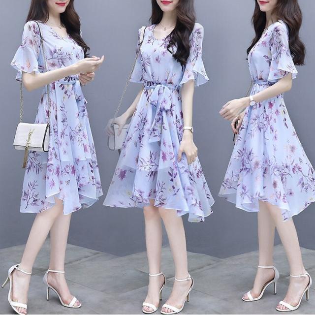 ワンピース デート フレアワンピース ワンピドレス ひざ丈 膝上 袖あり 7分袖 七分袖 ボリューム袖 フレアスリーブ Vネック 襟なし フレア シフォン フリル リボン ベルト ウエストマーク ウエストリボン 透け感 薄手 かわいい きれいめ 上品 おしゃれ お洒落 キュート ガーリー エレガント 主役級 花柄 小花柄 フラワー 春 夏 秋 デート お出かけ パーティー イベント 韓国 モテ S M L XL 2XL 3XL 大きいサイズ 青 ブルー ピンク 水色 パステルカラー 春カラー