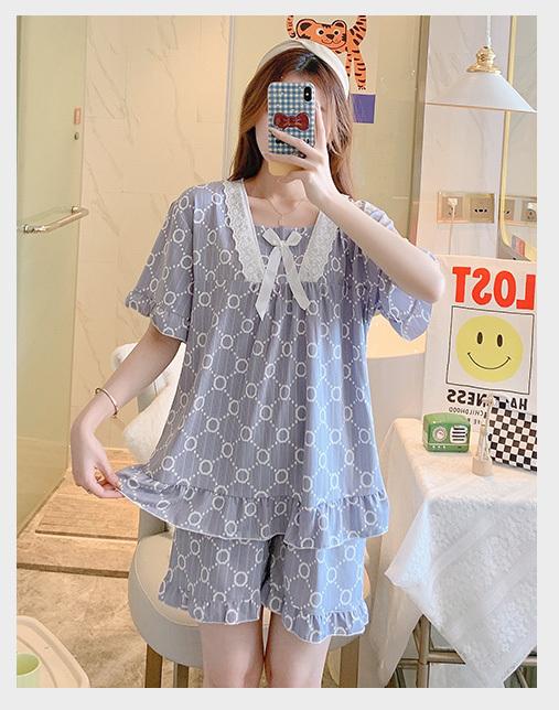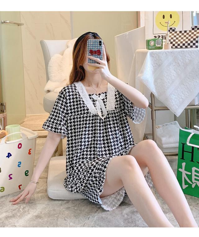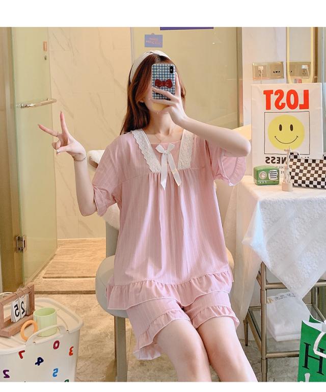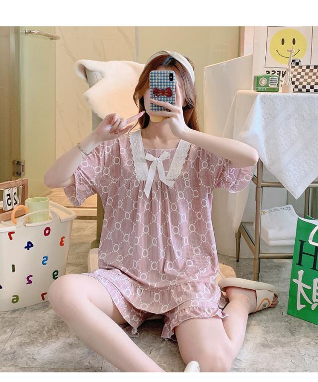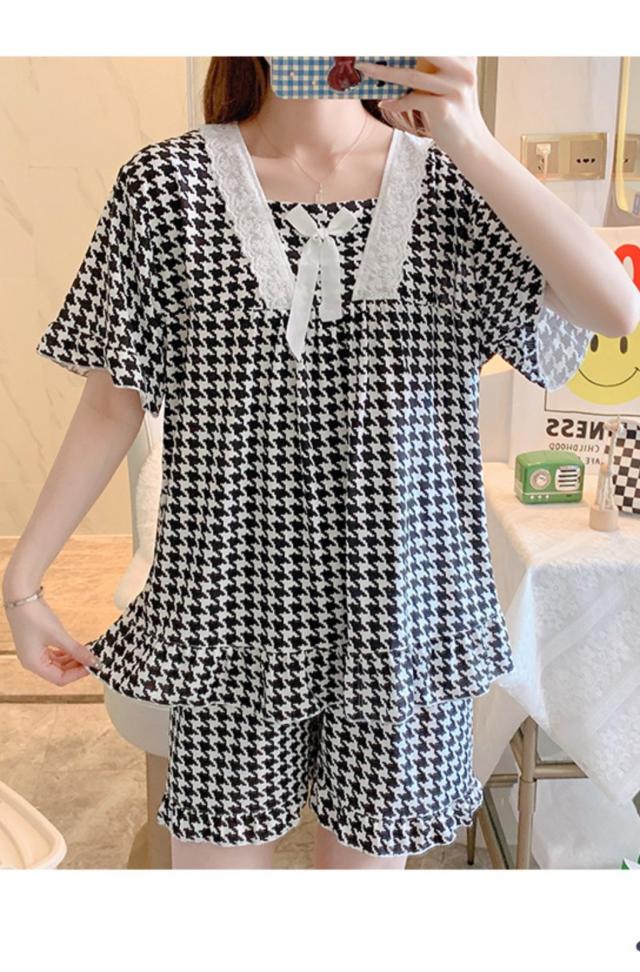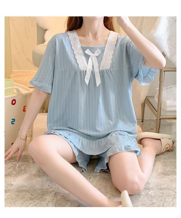 夏 半袖 ツーピース トップス パンツ ルームウェア パジャマ プルオーバー 寝巻き ナイトウェア ショートパンツ ミニ丈 ショート丈 袖あり 半袖 スクエアネック 襟なし レギュラー リボン ウエストゴム 伸縮性 レース 大人可愛い カジュアル お洒落 大人女子 キュート 無地 夏 10代 20代 レディース 女性用 ママ 女の子 OL 学生 お泊まり リゾート 旅行 ホテル 普段使い 楽ちん インスタ映え M L XL 2XL 3XL 4XL 5XL ブルー ピンク ライトブルー チェック 小豆色