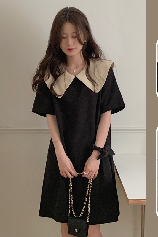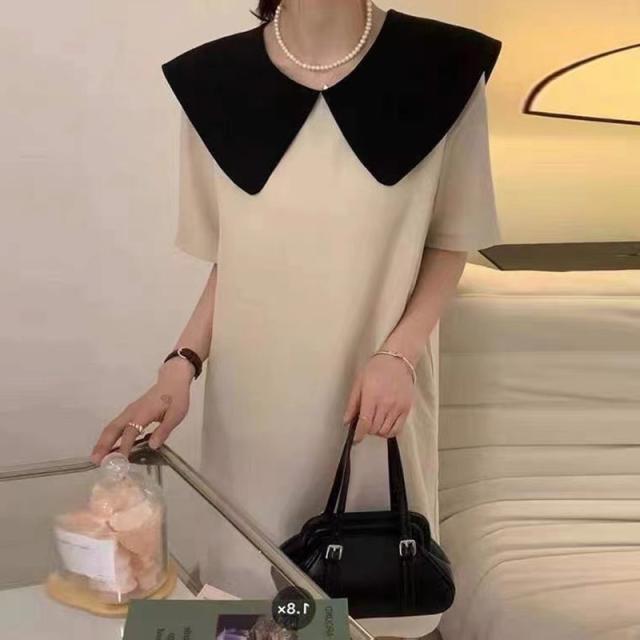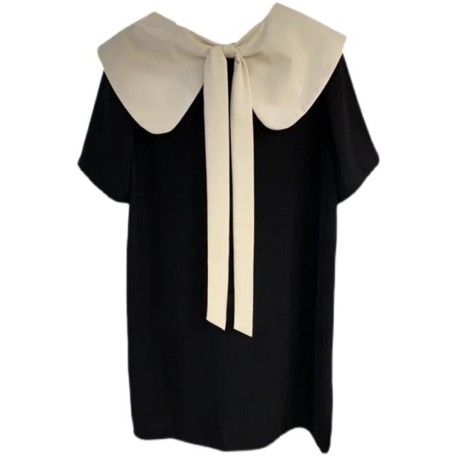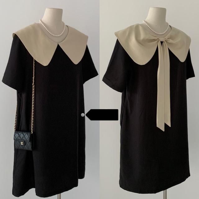 夏 サマードレス トップス ワンピース デート ワンピドレス ミドル丈 袖あり 半袖 ラウンドネック 襟付き ストレート リボン 伸縮性 異素材MIX レース かわいい 大人可愛い シンプル 上品 おしゃれ 大人女子 ラブリー 無地 夏 10代 20代 レディース 女性用 ママ マタニティ 女の子 オフィス ビジネス OL 通勤 学生 通学 お泊まり パーティー イベント リゾート レストラン 着回し ファッション 楽ちん インスタ映え M L XL 2XL ブラック アプリコット
