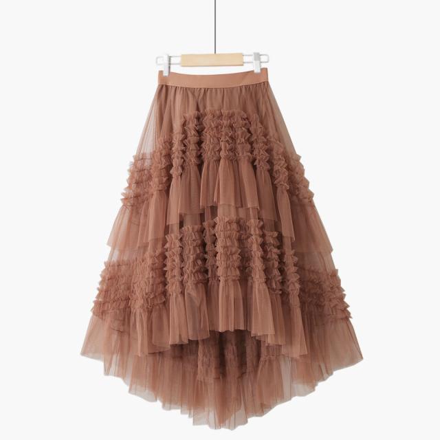 夏 レトロ バフスカート スカート ヒップスカート ミディスカート ミディアム丈 Aライン レース 刺繍 フリル ウエストゴム 薄手 レース かわいい 大人可愛い お洒落 レトロ 大人女子 ラブリー 無地 夏 20代 30代 レディース 女性用 ママ 女の子 ビジネス OL 通勤 学生 通学