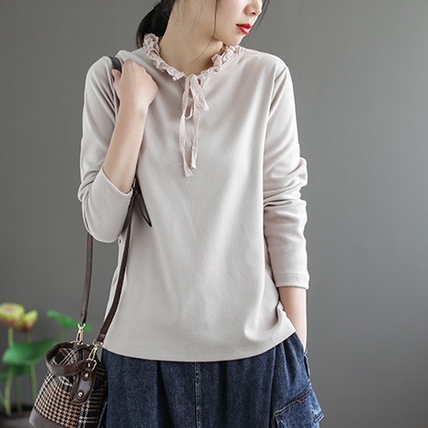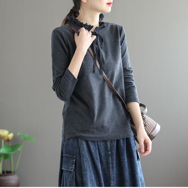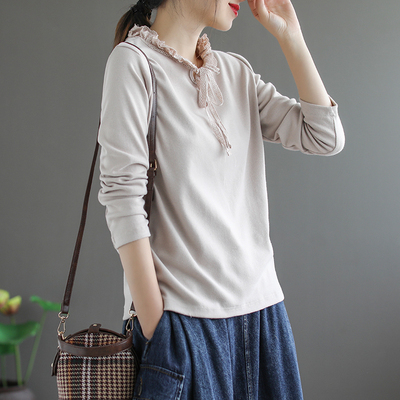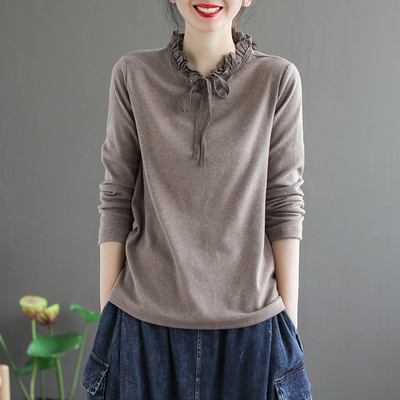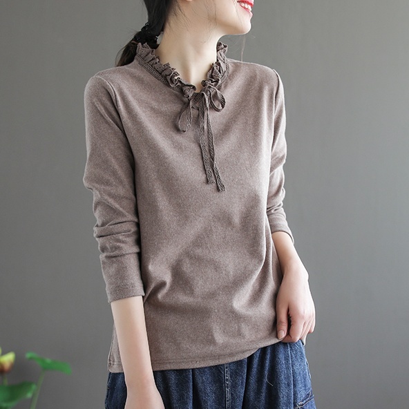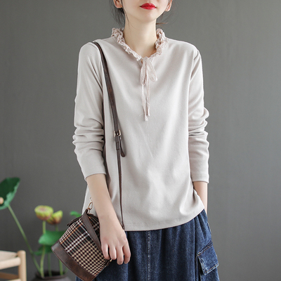カットソー 長袖 フリル 春 秋 冬 レディース 3色 くすみカラー トップス インナー シャツ リボン レトロ 上品 大人女子 ラフ 無地 韓国 トレンド タイト スリム 細見え アンティーク ヴィンテージ 無地 シンプル カジュアル かわいい 大人可愛い 大人女子 ガーリー 20代 30代