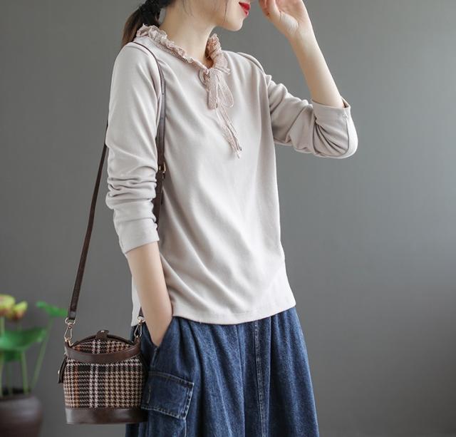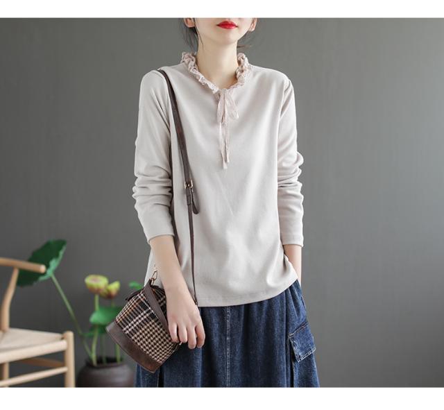 カットソー 長袖 フリル 春 秋 冬 レディース 3色 くすみカラー トップス インナー シャツ リボン レトロ 上品 大人女子 ラフ 無地 韓国 トレンド タイト スリム 細見え アンティーク ヴィンテージ 無地 シンプル カジュアル かわいい 大人可愛い 大人女子 ガーリー 20代 30代 40代 50代 お洒落 オシャレ きれいめ キュート リボン ゆったり 大きめ 大きいサイズ 着回し エレガント こなれ感