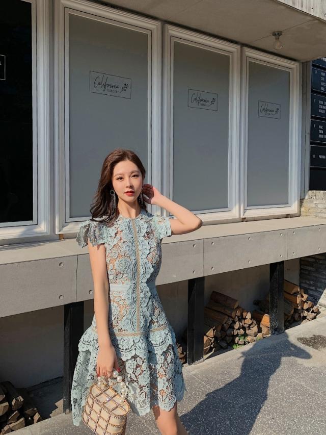 レース使いワンピース ドレス ワンピース Aラインドレス ワンピドレス カジュアルドレス ミニ丈 フレンチスリーブ Aライン 大人可愛い カジュアル 大人 上品 おしゃれ レトロ エキゾチック 大人女子 個性的 クール 主役級 存在感 ニッチ 華やか 柄 プリント 20代 30代 40代 50代 レディース 女性用 ママ デート お出かけ パーティー リゾート 旅行 海 プール 海外 ガーデン レストラン ファッション 高見え インスタ映え 春 夏 秋 お呼ばれ サイズ XS S M L XL ブルー