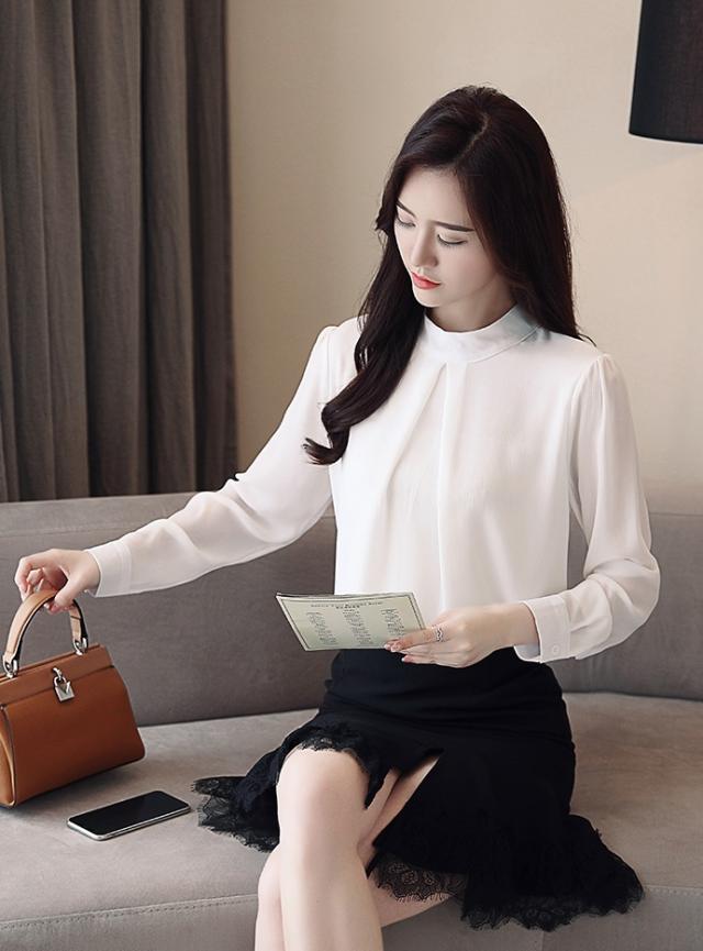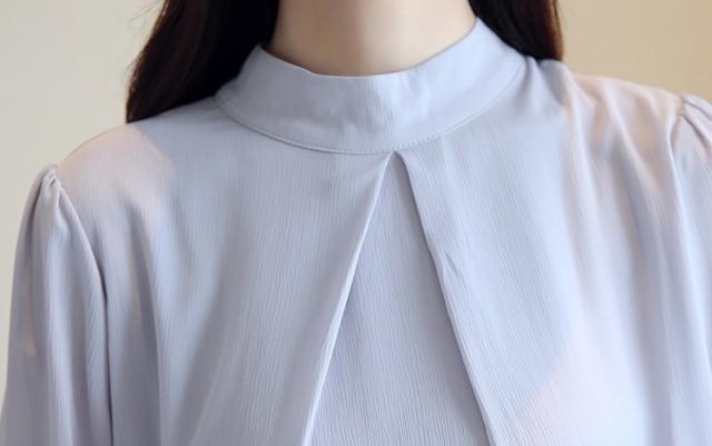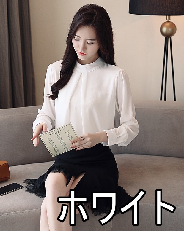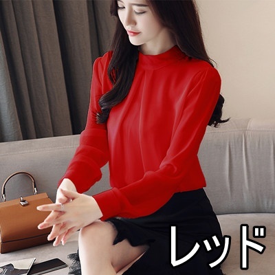 ブラウス 長袖 4色 シフォンブラウス レディース スタンドカラー 春 秋 冬 タック トップス シャツ カットソー シンプル カジュアル きれいめ 清楚 無地 フォーマル エレガント 着回し 立体感 20代 30代 40代 50代 ОL オフィス 通勤 お洒落 オシャレ 黒 ブラック 赤 レッド ブルー 青 水色 白 ホワイト 入学式 卒業式 ゆったり 大きめ 大きいサイズ XL 2XL 上品 こなれ感 大人 クール Iライン ストレート モダン シック 夏 薄手 オールシーズン