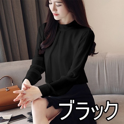 ブラウス 長袖 4色 シフォンブラウス レディース スタンドカラー 春 秋 冬 タック トップス シャツ カットソー シンプル カジュアル きれいめ 清楚 無地 フォーマル エレガント 着回し 立体感 20代 30代 40代 50代 ОL オフィス 通勤 お洒落 オシャレ 黒 ブラック 赤 レッド