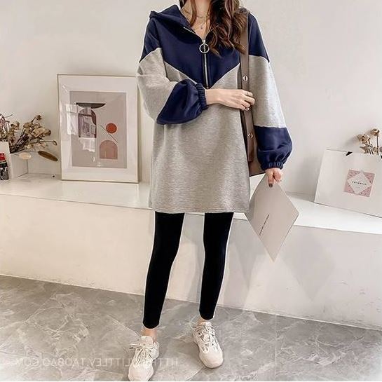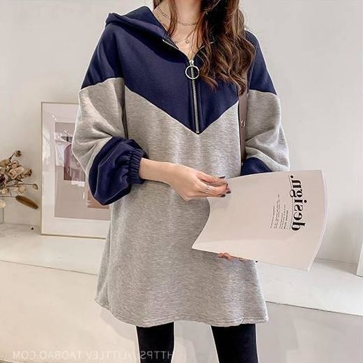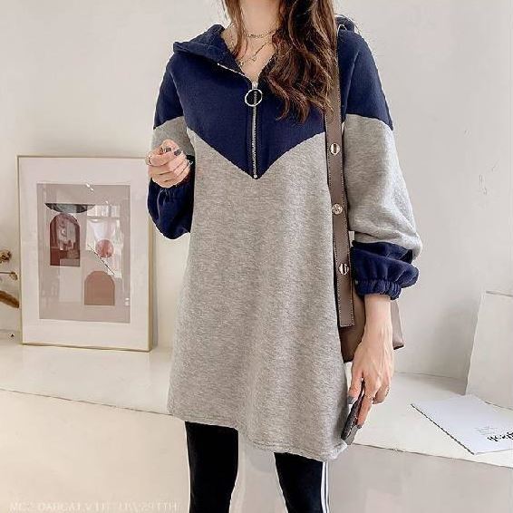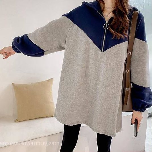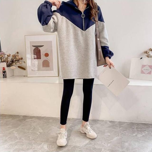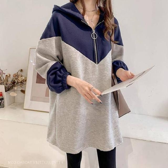 トップス レディース プルオーバー パーカー フーディー チュニック 長袖 フード付き ハーフジップ 配色 バイカラー トレンド ゆったり 大きいサイズ オーバーサイズ ドロップショルダー 体型カバー 着痩せ ルーズ 大人可愛い カジュアル 韓国 シンプル ラフ おしゃれ