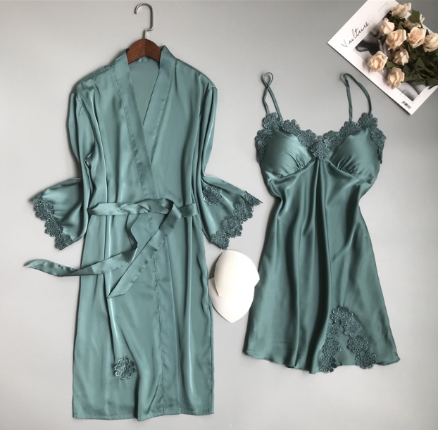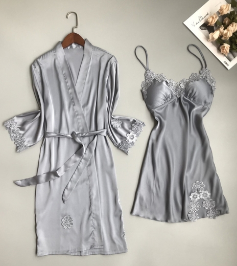 シルクタッチ ルームウェア デート 部屋着 ナイトウェア キャミソール ガウン ネグリジェ ショート ノースリーブ 長袖 Vネック スリム レース 刺繍 スリット サテン 2点セット ツーピース きれいめ 大人 上品 エキゾチック 大人女子 クール セクシー エレガント 無地 フラワー オールシーズン 20代 30代 40代 50代 レディース 女性用 ママ 休日 ホテル スタイル モテ ギフト サイズ M L XL 色展開 グレー 黄色 ピンク ブルーグリーン レッド カラバリ
