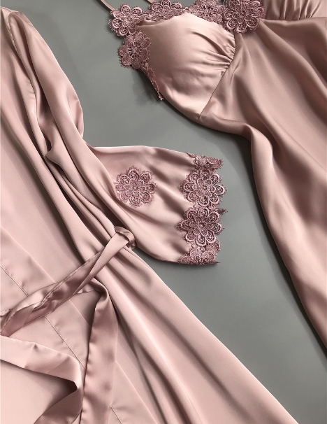 光沢感のあるシルクタッチのベビードール&ガウン