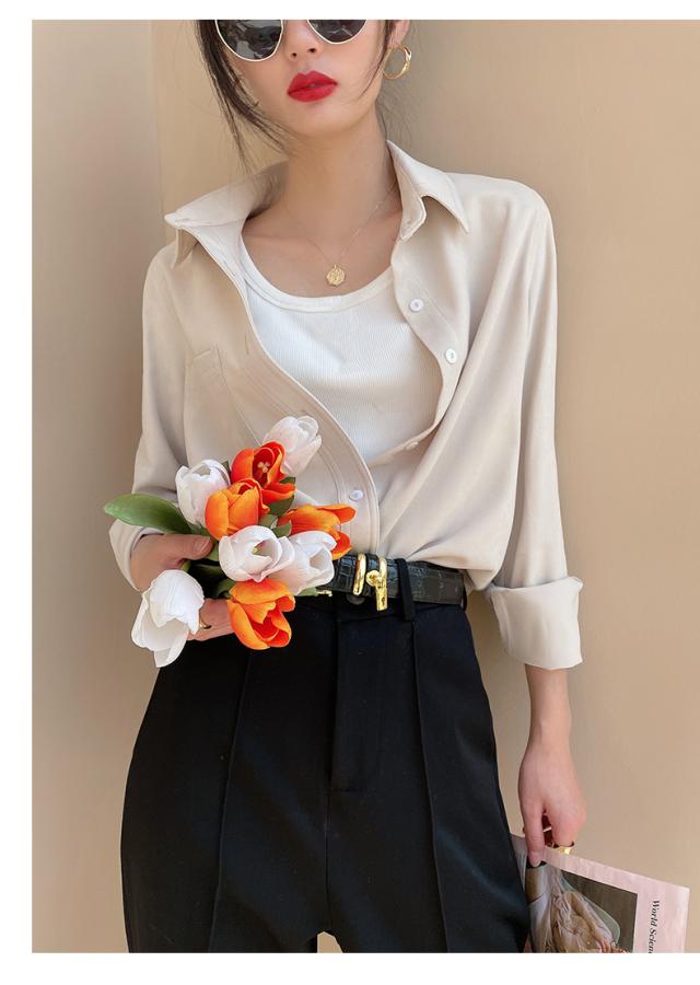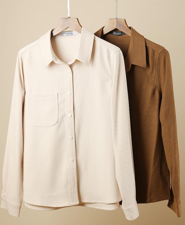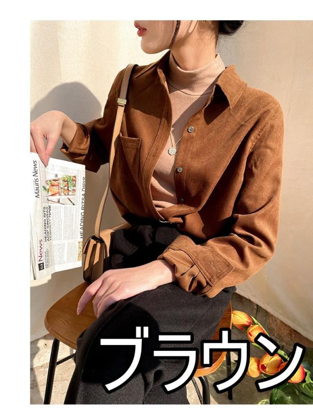 ブラウス 7色 スウェード 長袖 レディース トップス 秋 冬 シャツ くすみカラー きれいめ 上品 シンプル カジュアル 無地 着回し ゆったり 大きいサイズ 大きめ XL ストレート Iライン お洒落 オシャレ 大人 ブラウン 茶色 イエロー 黄色 ピンク 青 水色 ブルー 厚手 ОL