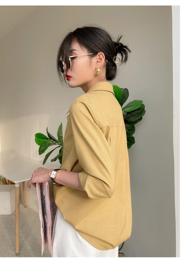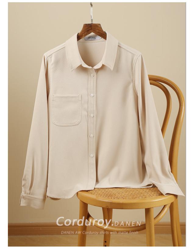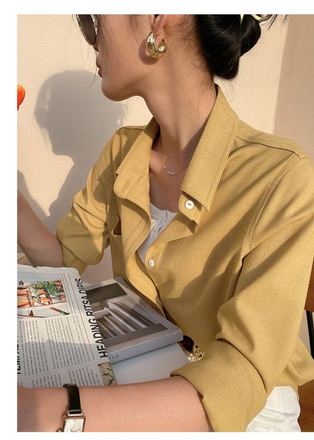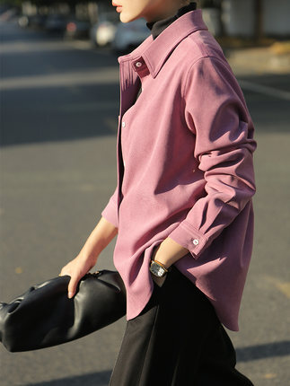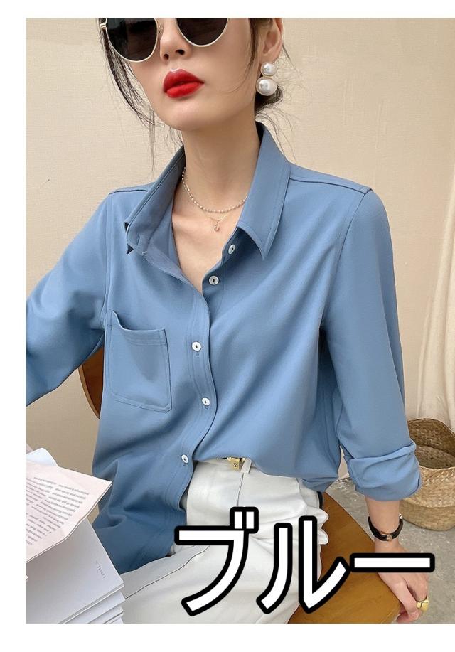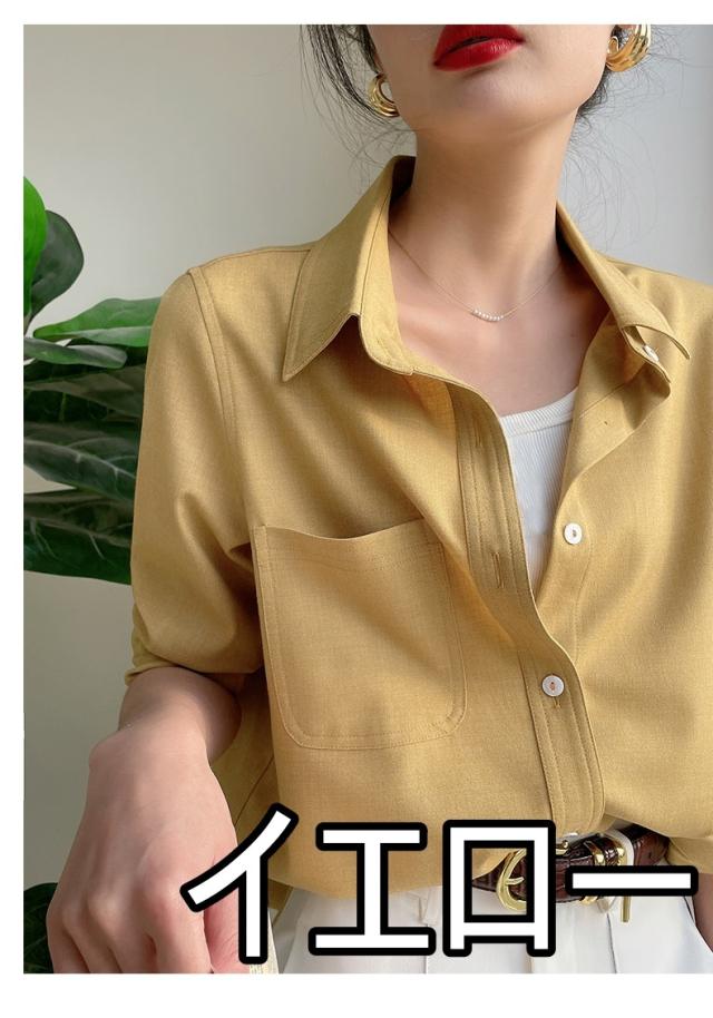 ブラウス 7色 スウェード 長袖 レディース トップス 秋 冬 シャツ くすみカラー きれいめ 上品 シンプル カジュアル 無地 着回し ゆったり 大きいサイズ 大きめ XL ストレート Iライン お洒落 オシャレ 大人 ブラウン 茶色 イエロー 黄色 ピンク 青 水色 ブルー 厚手 ОL オフィス 通勤 仕事 かわいい 大人可愛いエレガント 前開き ラフ スキッパー ステンカラー レギュラーカラー 襟付き 30代 40代 50代 重ね着 ポケット