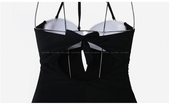 水着 スイムウェア ワンピース水着 体系カバー水着 ワンピース ホルターネック 紐 体系カバー バックリボン 伸縮性 胸元 谷間 谷間魅せ 盛れる かわいい 大人可愛い きれいめ シンプル 大人 大人っぽい おしゃれ お洒落 女っぽ スタイリッシュ 無地 10代 20代 30代 レディース