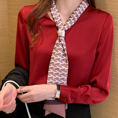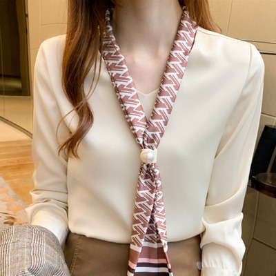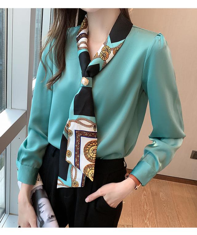 春 トップス ネクタイ トップス ブラウス カーディガン 上着 ショート丈 袖あり 長袖 Vネック 襟付き ストレート 裾イン シフォン 異素材MIX 大人可愛い きれいめ カジュアル 大人 おしゃれ レトロ エスニック 大人女子 無地 春 20代 30代 レディース 女性用 ママ OL 学生