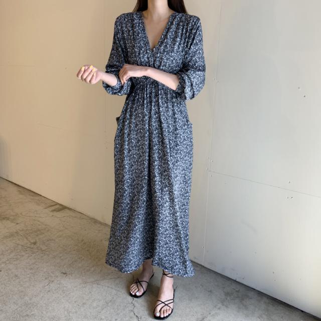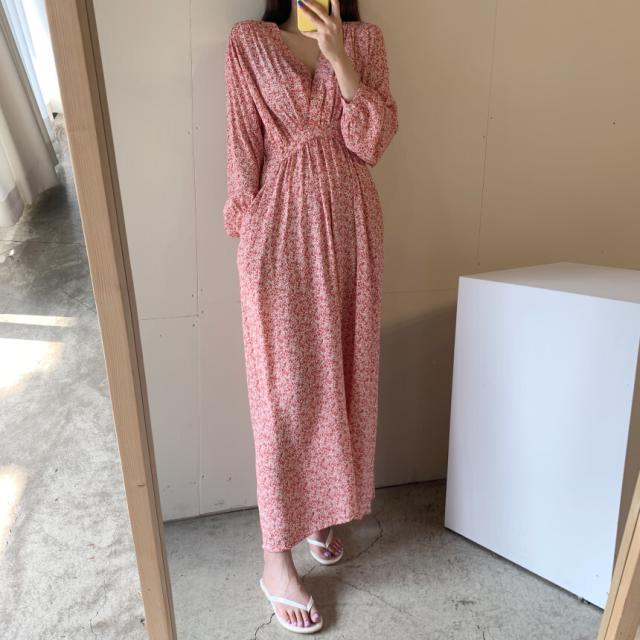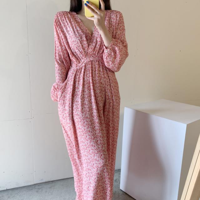 秋 レトロ ロングドレス ワンピース ロングドレス ワンピースドレス ダンスドレス ロング丈 袖あり 長袖 パフスリーブ Vネック 襟なし ハイウエスト 異素材MIX 大人可愛い きれいめ 上品 レトロ 大人女子 ルーズ セクシー 柄 10代 20代 レディース 女性用 ママ マタニティ