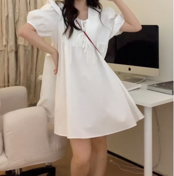 パフスリーブワンピース ドレス スカート ワンピース ドレス ミニスカート ミニ ミニ丈 五分袖 パフスリーブ フリル Vネック Aライン ハイウエスト ウエストマーク 大人可愛い きれいめ シンプル 大人 上品 おしゃれ お洒落 かっこいい レトロ 大人女子 キュート 個性的 セクシー モダン 無地 春 夏 20代 30代 レディース 女性用 デート お出かけ 女子会 休日 パーティー イベント リゾート ホテル ガーデン レストラン 普段使い コーデ スタイル フリーサイズ ワンサイズ ホワイト