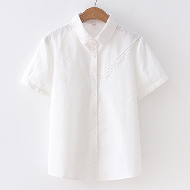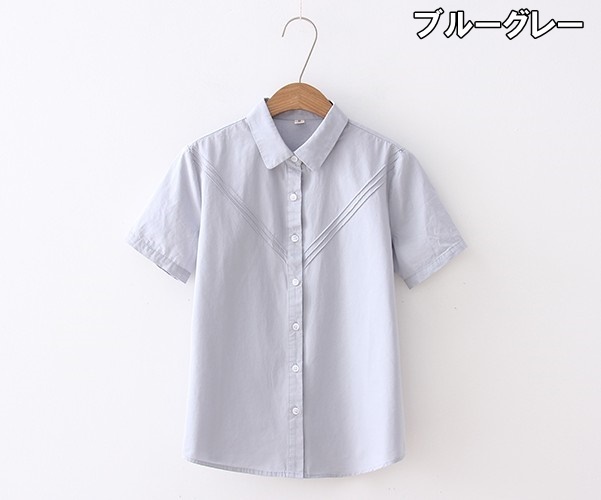 シャツ レディース トップス ブラウス S M L XL ホワイト 白 ブルーグレー 灰色 青 無地 ライン コットン 綿 春 夏 半袖 襟付き ショート丈 ミドル丈 ストレート スリム フィット 細身 ママ フェミニン ナチュラル カジュアル きれいめ きれカジ 大人 大人可愛い こなれ感 ぬけ感 存在感 主役級 休日 お出かけ デート お呼ばれ さわやか きちんと感 清潔感 ガーリー モテ キュート 定番 万能 着回し 王道 シンプル ベーシック 通学 学生 通勤 OL オフィス 韓国 オルチャン