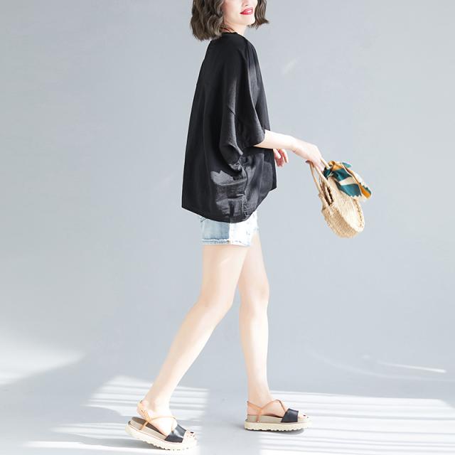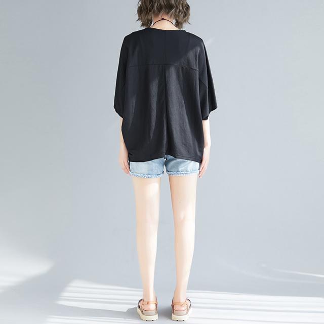 白黒カラバリドルマンスリーブ5分袖ワイドTシャツカットソー。