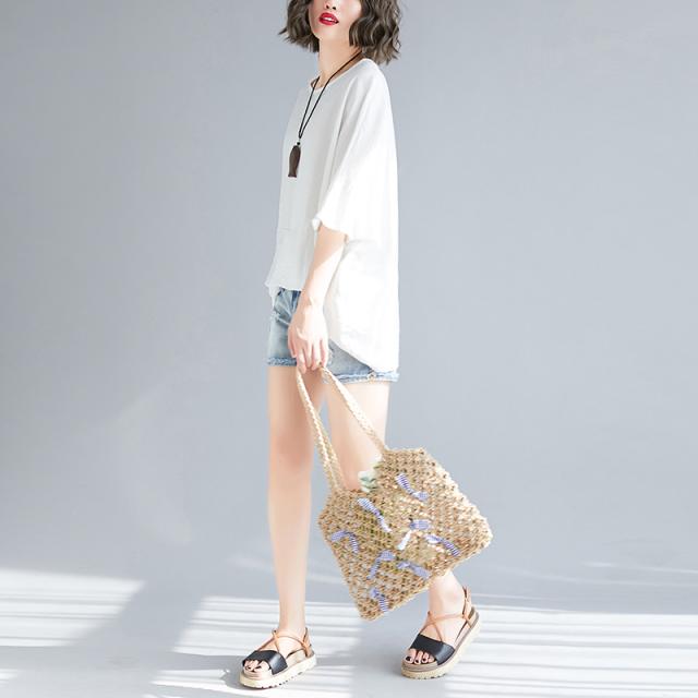 トップス レディース 白トップス カットソー ブラウス プルオーバー 袖あり 5分袖 五分袖 ドルマンスリーブ ボリューム袖 ラウンドネック ワイド ゆったり 大人可愛い きれいめ シンプル カジュアル おしゃれ お洒落 大人 かっこいい 大人女子 こなれ感 ラフ 主役級 存在感