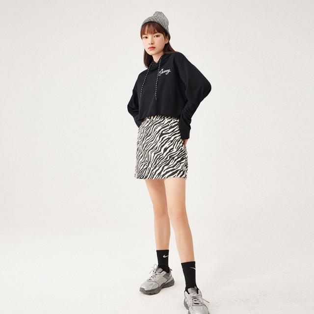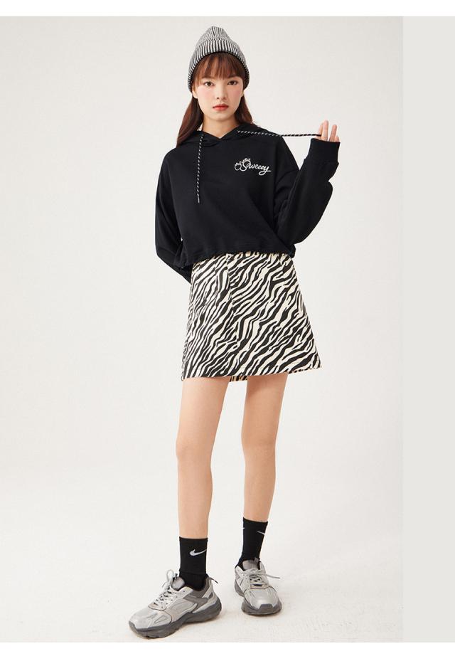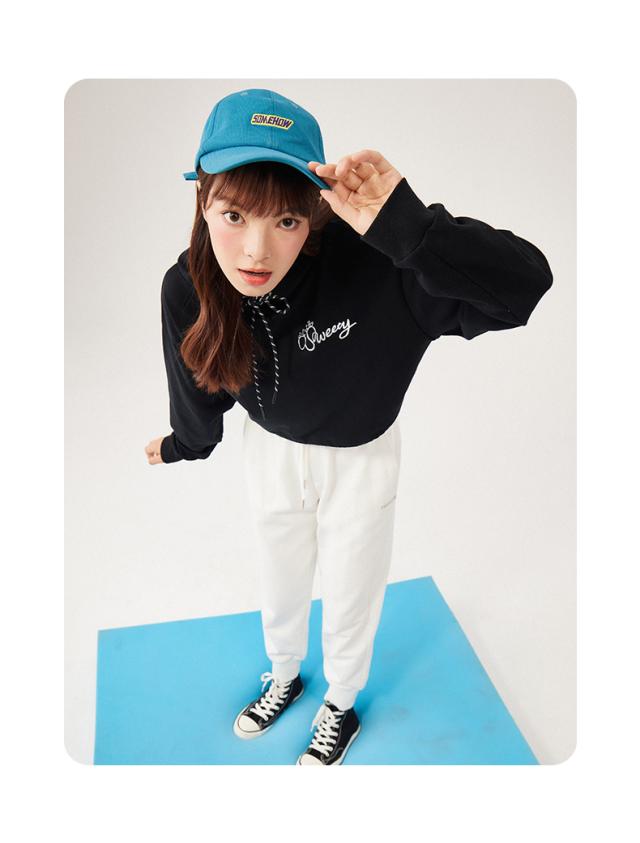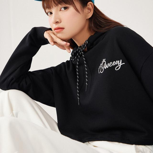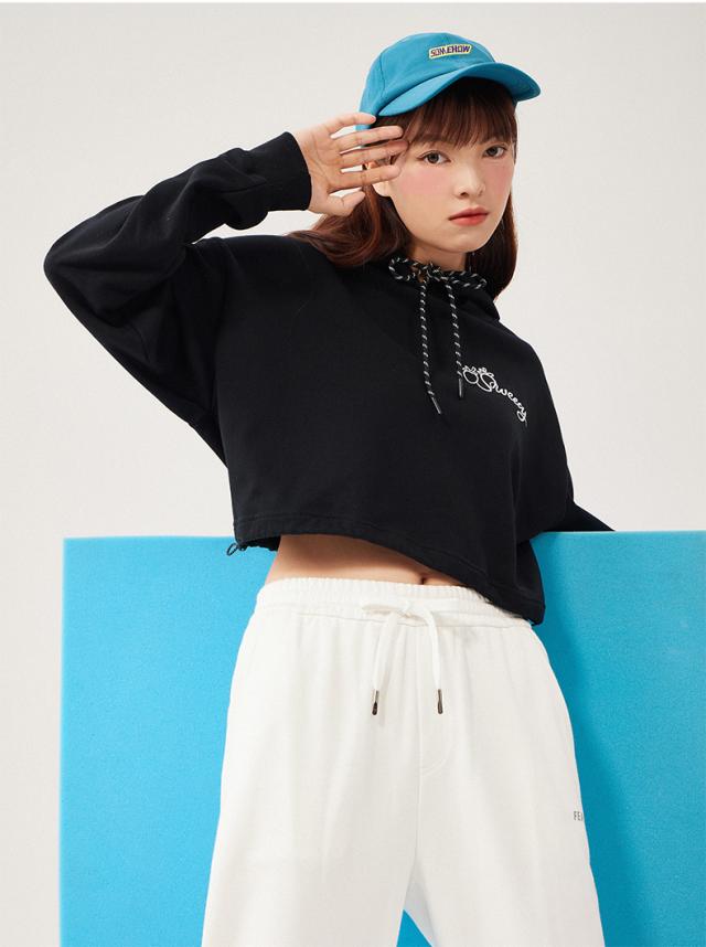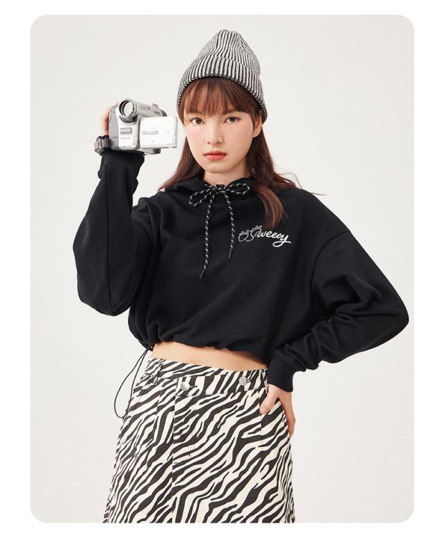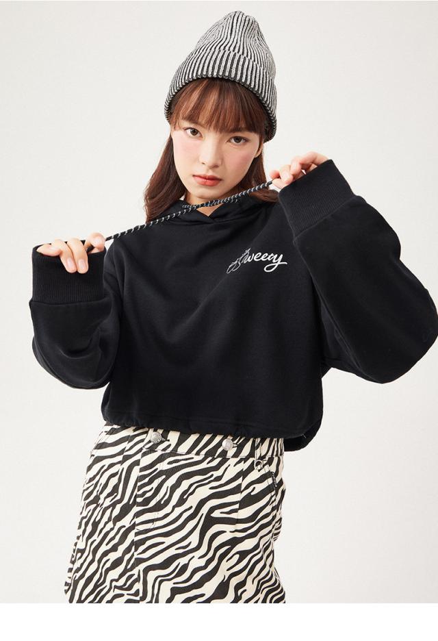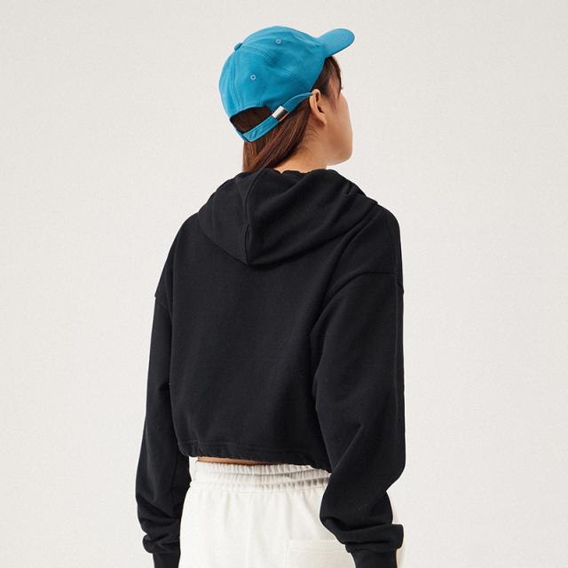 ショート丈ブラックカラーパーカースウェットトレーナー。