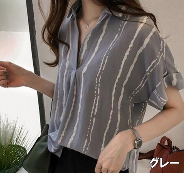 シャツ レディース トップス ブラウス M L XL 2XL 3XL 4XL 大きいサイズ プラスサイズ ホワイト 白 グレー 灰色 イエロー 黄色 ストライプ 春 夏 半袖 ロールアップ 襟付き ショート丈 ミドル丈 ストレート ルーズ ゆったり ゆる ママ フェミニン ナチュラル カジュアル
