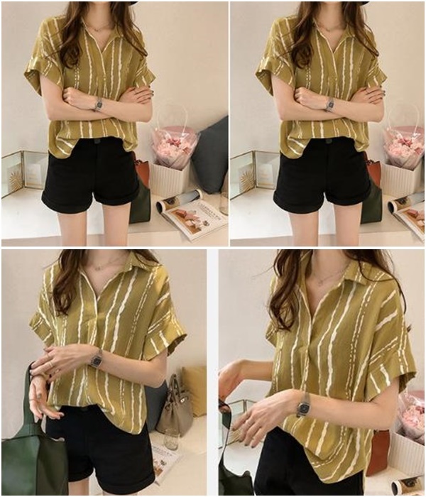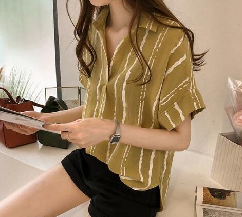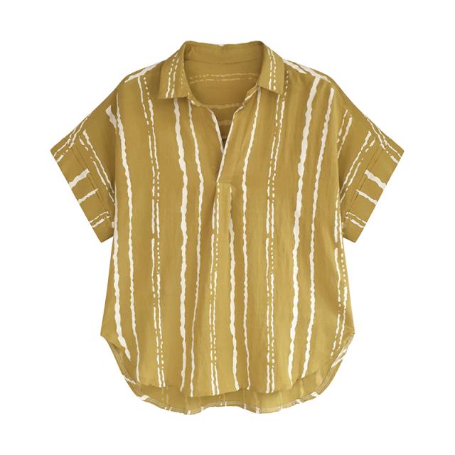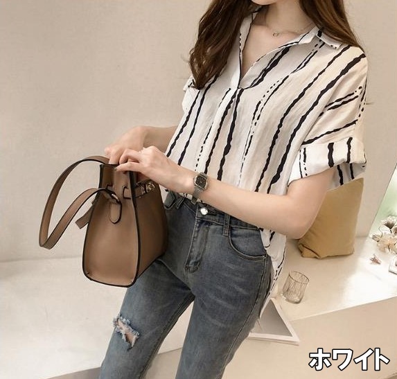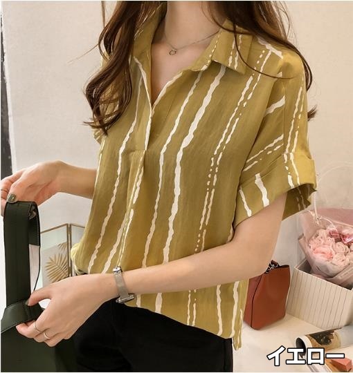 シャツ レディース トップス ブラウス M L XL 2XL 3XL 4XL 大きいサイズ プラスサイズ ホワイト 白 グレー 灰色 イエロー 黄色 ストライプ 春 夏 半袖 ロールアップ 襟付き ショート丈 ミドル丈 ストレート ルーズ ゆったり ゆる ママ フェミニン ナチュラル カジュアル きれいめ きれカジ 大人 大人可愛い こなれ感 ぬけ感 存在感 主役級 休日 お出かけ デート お呼ばれ さわやか ガーリー キュート 定番 万能 着回し 王道 シンプル ベーシック 通学 学生 韓国 オルチャン