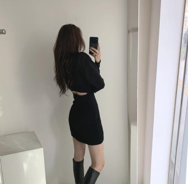 秋冬 スリム ドレス ワンピース デート プルオーバー ミニスカート ワンピドレス 膝上 ミドル丈 袖あり 長袖 ラウンドネック 襟なし フレア スリム 透け感 普通生地(秋冬用) かわいい シンプル 大人 おしゃれ お洒落 大人可愛い 大人女子 キュート セクシー 無地 秋 冬 10代