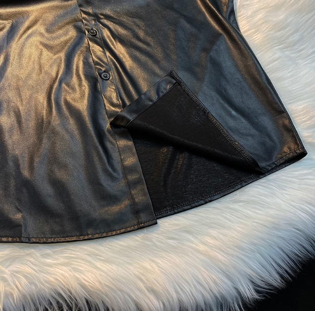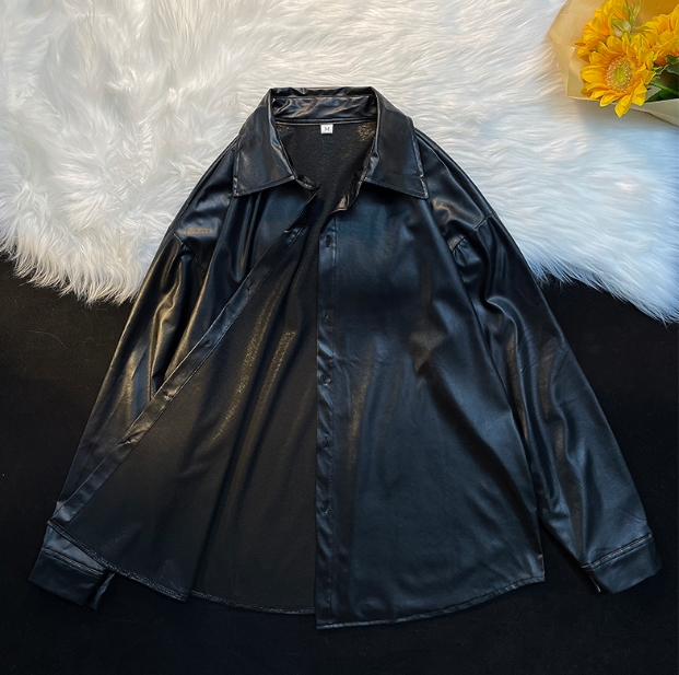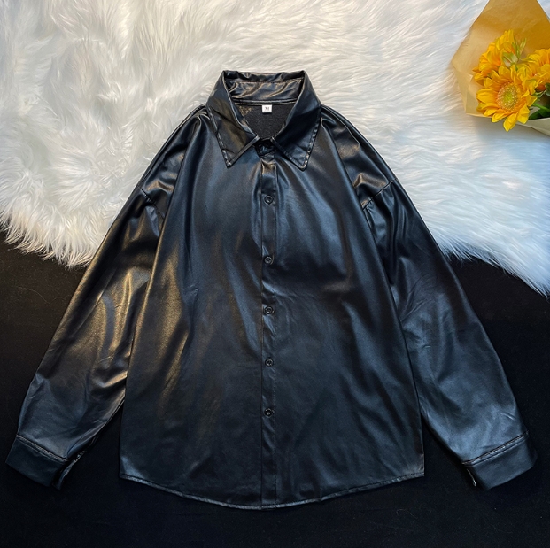 トップス ブラウス カットソー 袖あり 長袖 襟付き ポロカラー ワイド 前開き シンプル カジュアル 大人 かっこいい ラフ メンズライク マニッシュ ボーイッシュ クール ストリート 無地 春 秋 冬 10代 20代 30代 メンズ ペア 男女兼用 女の子 男の子 学生 通学 デート お出かけ お泊まり 休日 散歩 着回し 普段使い 重ね着 お揃い コーデ 楽ちん 体系カバー 合わせやすい サイズ M L XL 2XL 大きめ ビッグサイズ ゆったり 黒 メタリック