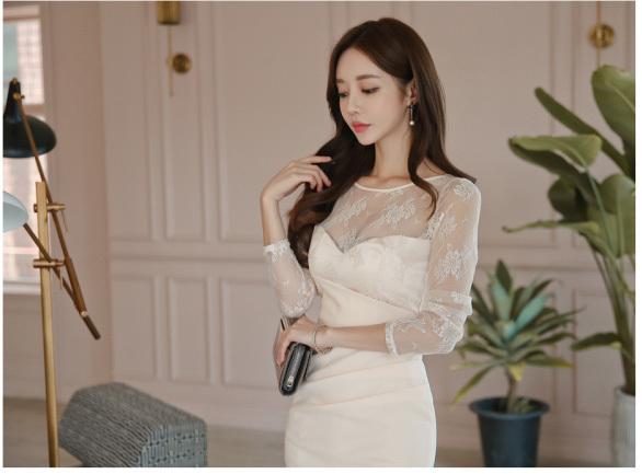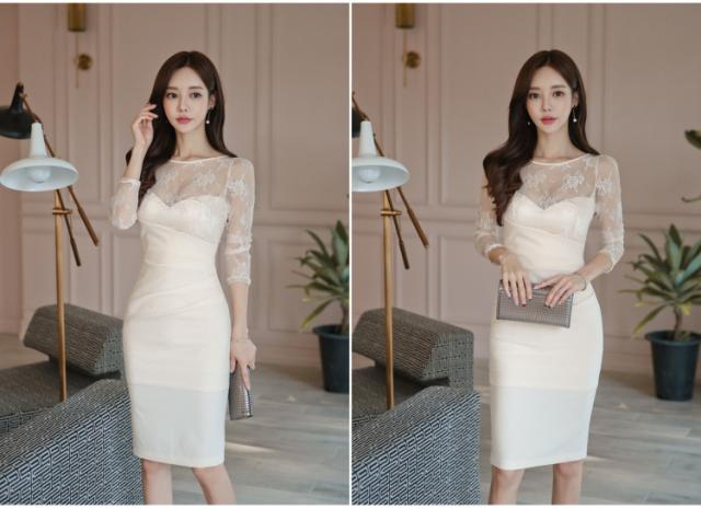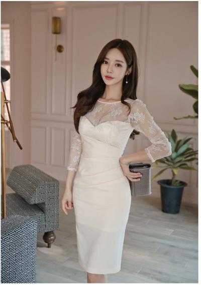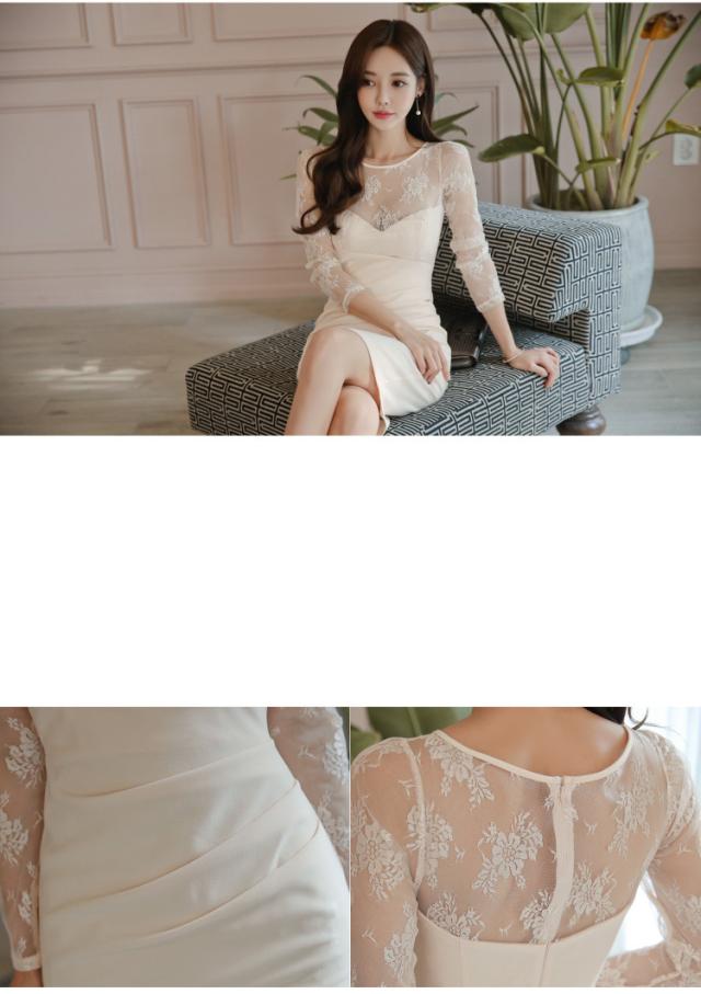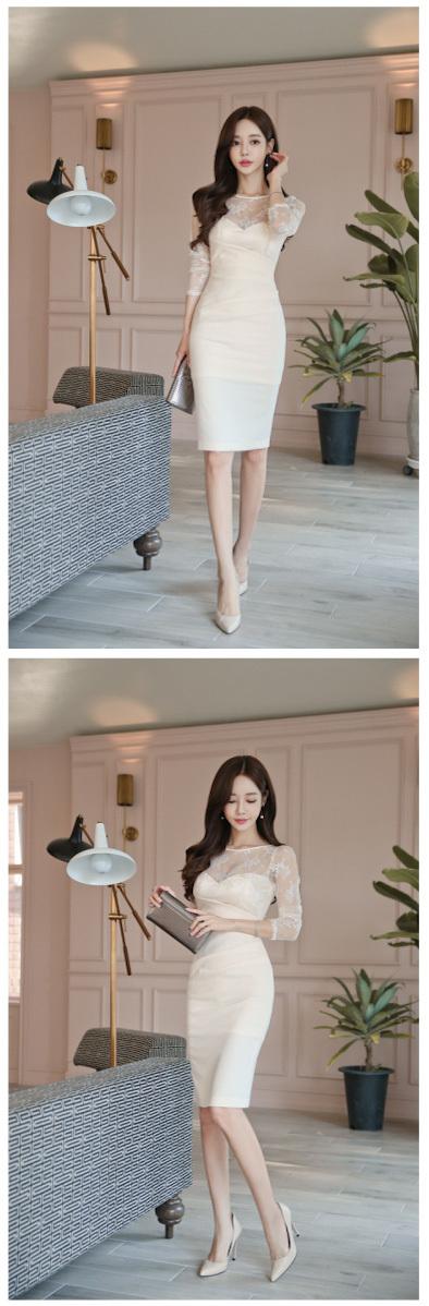 秋のレーススリムドレス