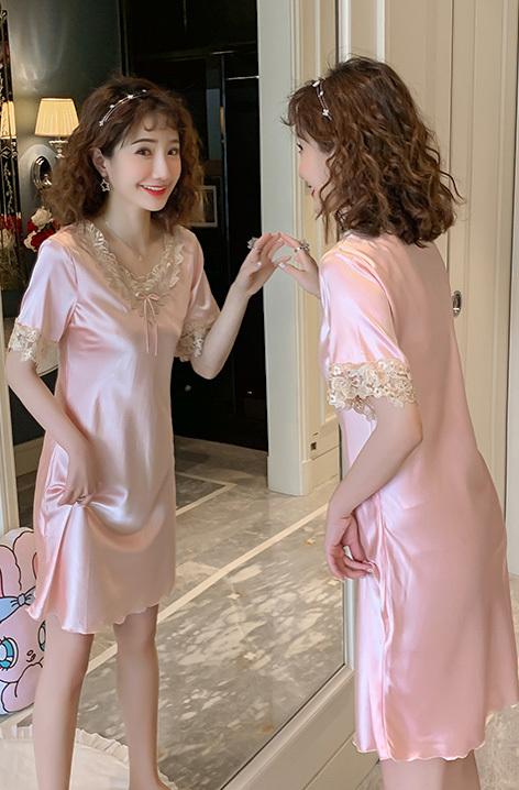 夏 シルク レディース ワンピース ルームウェア 部屋着 ミドル丈 袖あり 半袖 ラウンドネック 襟付き 襟なし フリル リボン 綿 異素材MIX シルク かわいい 大人 大人女子 セクシー 無地 夏 10代 20代 30代 レディース 女性用 女の子 OL 学生 お泊まり 重ね着 楽ちん