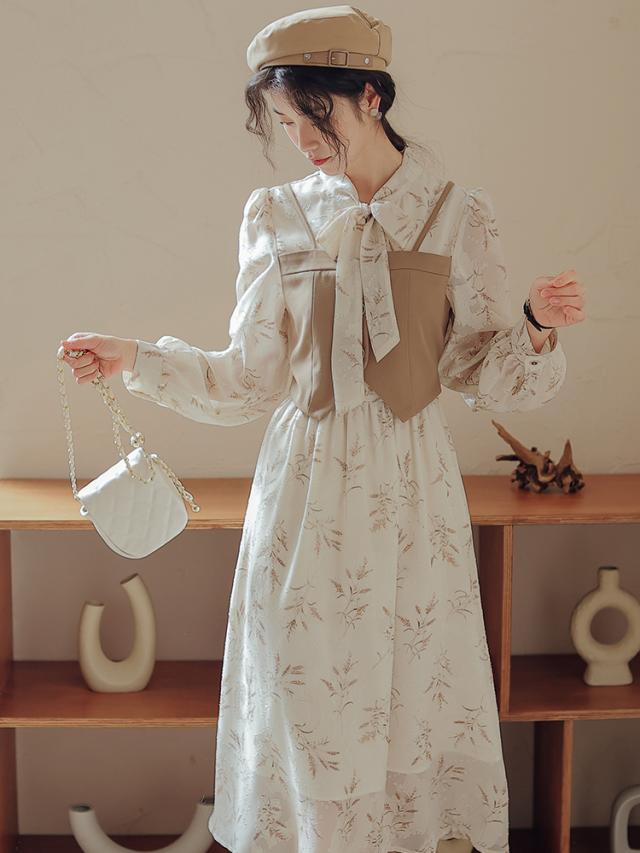 ドレスワンピース ワンピース ロングワンピース ロングドレスワンピース 襟付き 袖あり 長袖 かわいい 大人可愛い きれいめ シンプル カジュアル 大人 上品 おしゃれ お洒落 かっこいい レトロ アジアン エスニック エキゾチック 大人可愛い 大人女子 こなれ感 ラフ キュート