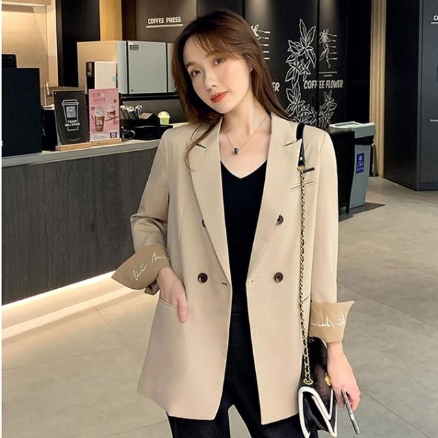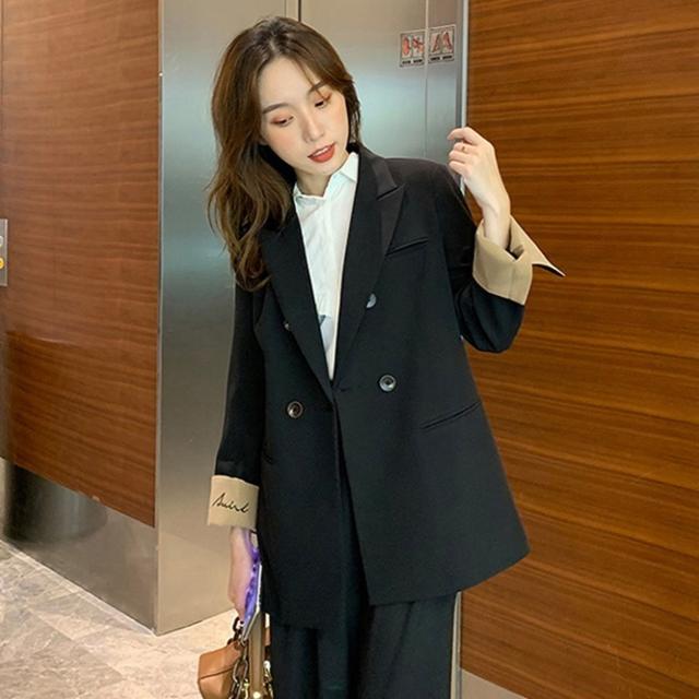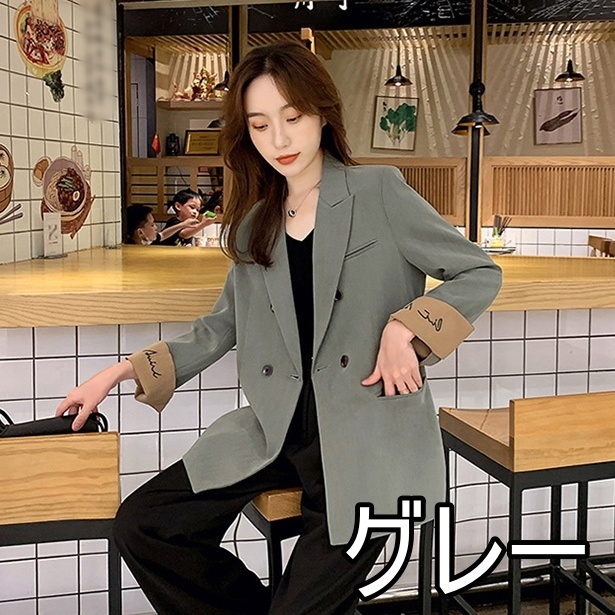 アウター ジャケット 袖デザイン レディース 3色 ロング丈 長袖 コート ブレザー 2way 春 秋 ゆったり バイカラー 大きいサイズ 大きめ S М L XL 体型カバー 細見え ワイド 着痩せ 20代 30代 40代 無地 シンプル カジュアル きれいめ 上品 エレガント オシャレ オシャレ かわいい 大人可愛い ОL オフィス 通勤 仕事 デート 女子会 ロゴ 英字 Vネック ロング 黒 ブラック グレー 灰色 ベージュ アプリコット 個性派 個性的 映え 韓国 トレンド 流行 デート 女子会