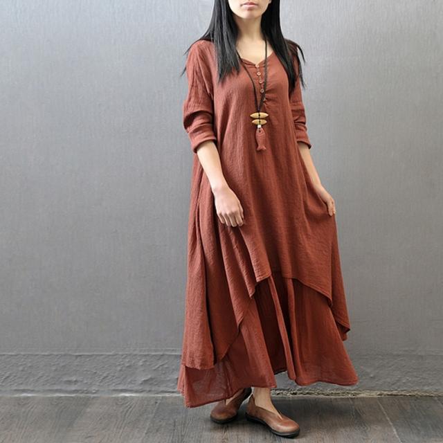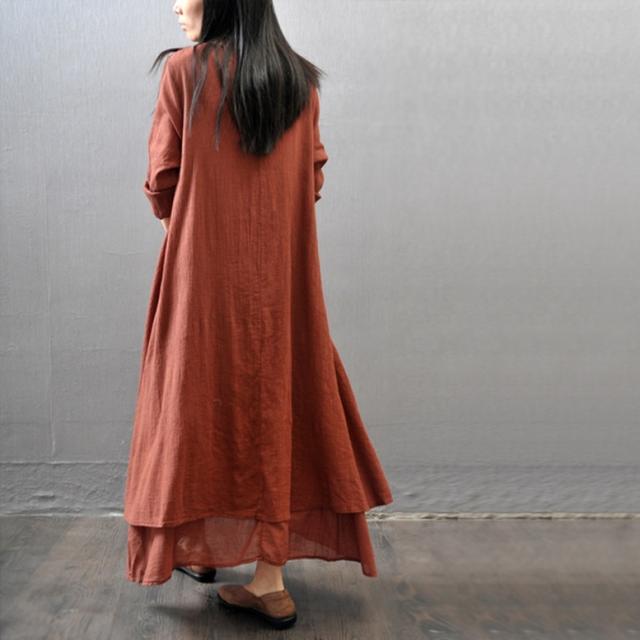 リネン風ワンピース ワンピース レディース 重ね着風ワンピース リネンドレス 長袖 綿麻 ロング丈 シャツワンピース カジュアル おしゃれ Vネック ロング ナチュラル マキシワンピース リネン調 ロングワンピース 大きいサイズ 白 黄色 茶色 ホワイト ジンジャーイエロー ココアブラウン 大人可愛い きれいめ 上品 エレガント レトロ 春 夏 秋 冬 二次会 オフィス お出かけ パーティー イベント 女子会 体型カバー オーバーサイズ ゆったり くすみカラー アースカラー