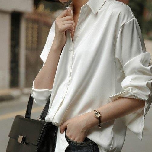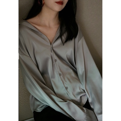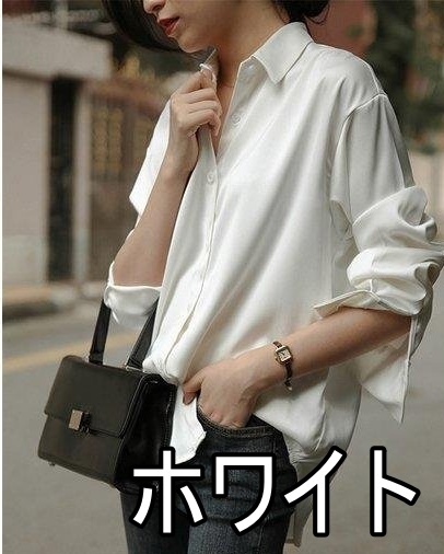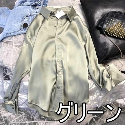 トップス ブラウス 5色 サテン レディース オーバーサイズ 長袖 光沢 くすみカラー シャツ 大きいサイズ ゆったり 大きめ XL 2XL 体型カバー 細見え ワイド 着やせ 上品 きれいめ エレガント ゴージャス 高級感 ホワイト 白 ブラック 黒 緑 グリーン ベージュ グレー 灰色 春 秋 薄手 レトロ ヴィンテージ アンティーク シンプル 無地 カジュアル 20代 30代 40代 50代 オシャレ お洒落 かわいい 大人可愛い クール かっこいい ボーイッシュ 女子会 萌え袖 スーツ ОL 通勤