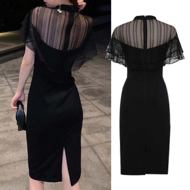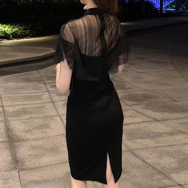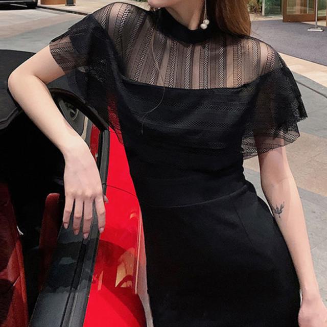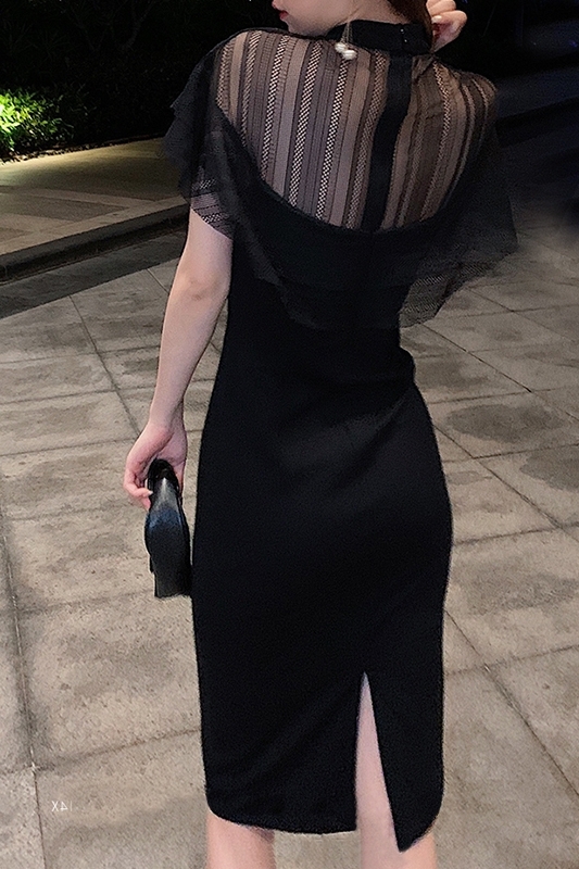 夏 フレンチ ドレス ドレス パーティードレス ロングドレス ワンピースドレス ナイトドレス ロング丈 袖あり 半袖 ラウンドネック 襟なし スレンダー 細身 レース バックスリット 胸元 ミドルウェスト 異素材MIX 大人可愛い きれいめ 大人 お洒落 レトロ 大人女子 クール セクシー スタイリッシュ 無地 20代 30代 レディース 女性用 ママ オフィス ビジネス OL 通勤 デート 休日 パーティー ホテル スタイル モテ インスタ映え 夏 S M L XL 2XL 3XL 4XL ブラック