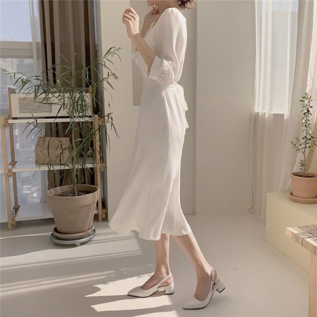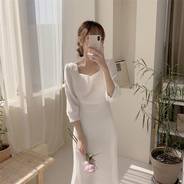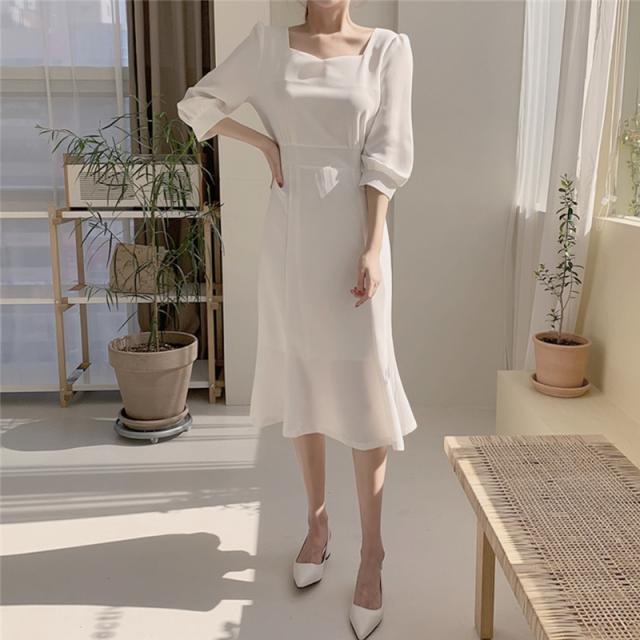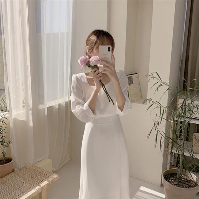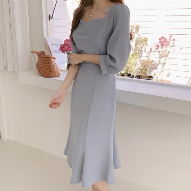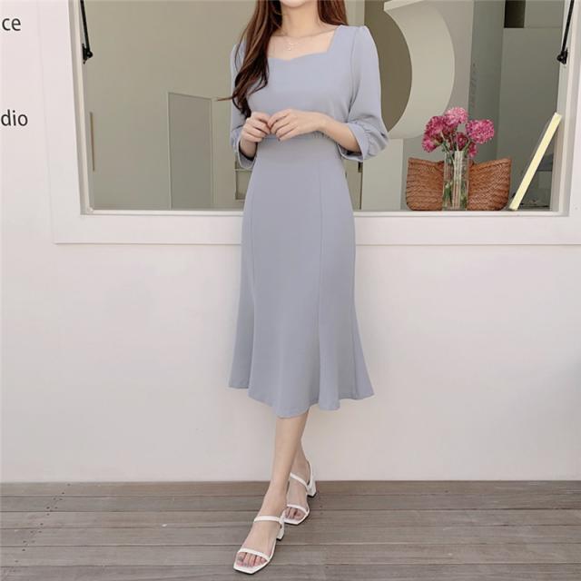 夏 フレンチ ドレス ドレス ワンピース パーティドレス フォーマルドレス ワンピースドレス ワンピドレス ミディアム丈 袖あり 7分袖 スクエアネック 襟なし スリム 細身 レース ファスナー プルオーバー 異素材MIX 大人可愛い きれいめ 上品 おしゃれ レトロ 大人女子 エレガント フォーマル ナチュラル お嬢様 無地 10代 20代 レディース 女性用 ママ OL 学生 デート 休日 パーティー イベント ホテル レストラン ファッション インスタ映え S M L XL ホワイト ブルー