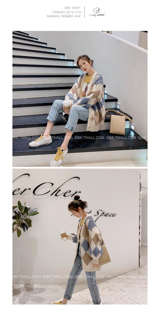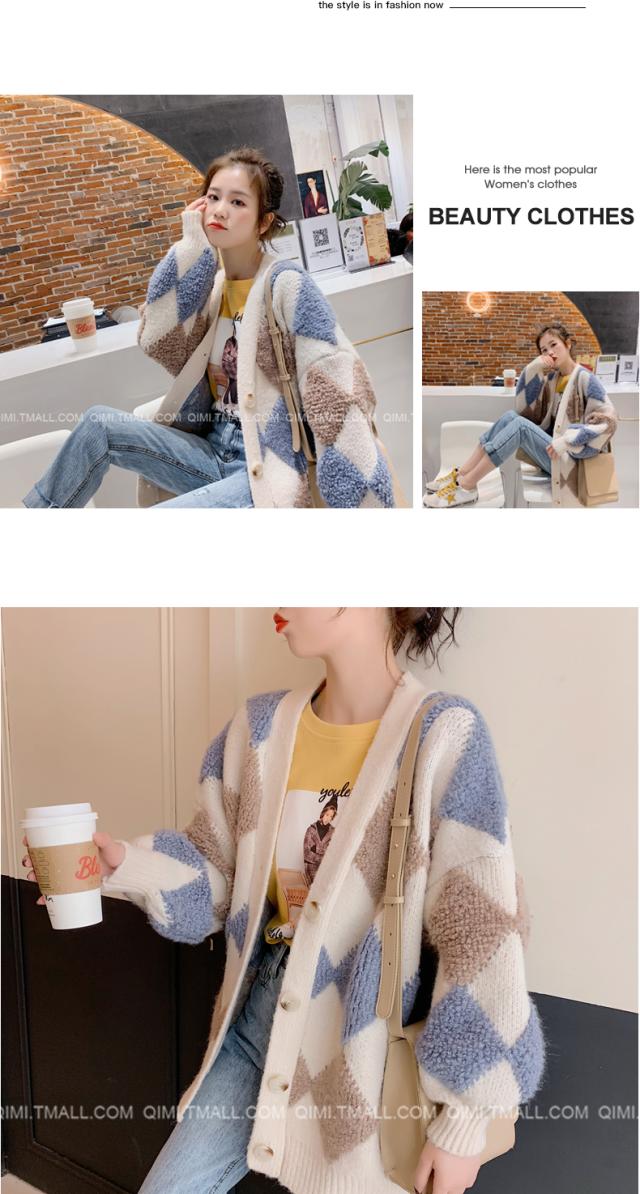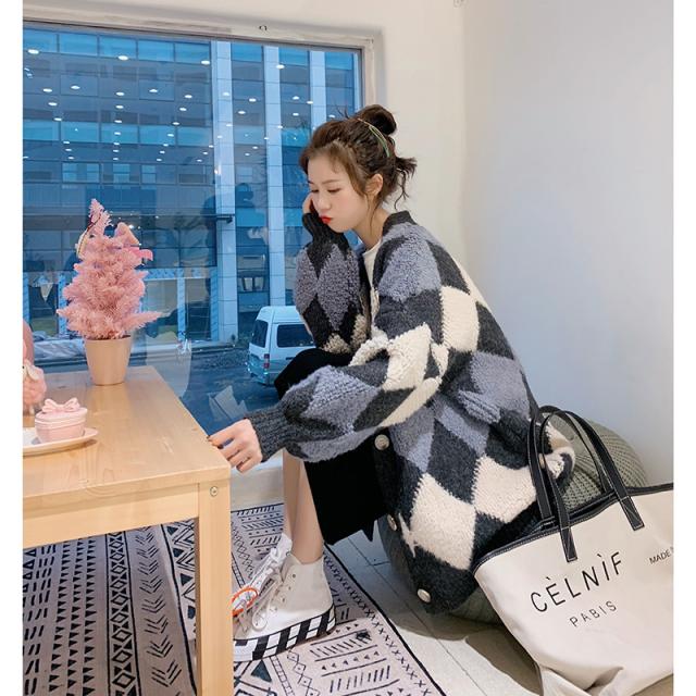 春秋 セーター カーディガン アウター セーター カーディガン 上着 膝上 ミディアム丈 袖あり 長袖 Vネック 襟なし ストレート シングルブレスト もこもこ 前開き 編み込み 厚手 異素材MIX かわいい 大人可愛い おしゃれ レトロ こなれ感 ルーズ 格子柄 春 秋 10代 20代