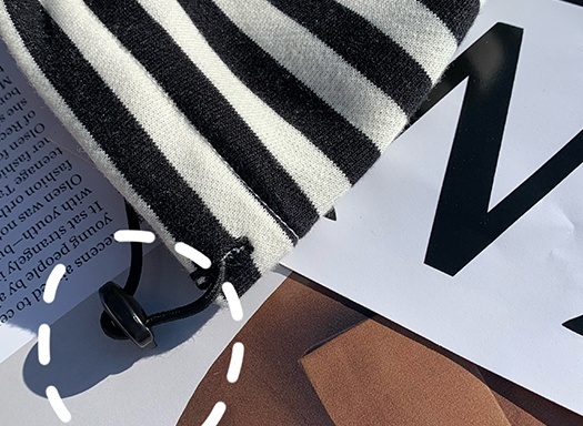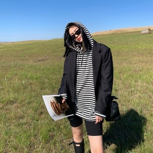 細めのボーダーに大きめフードがかわいいカットソーです。