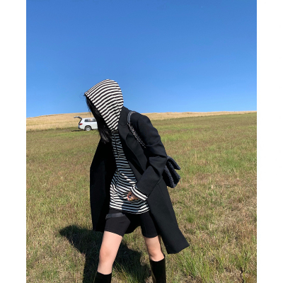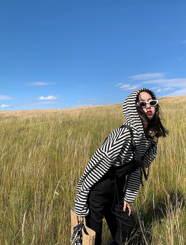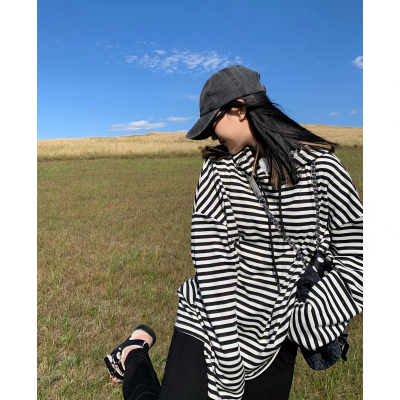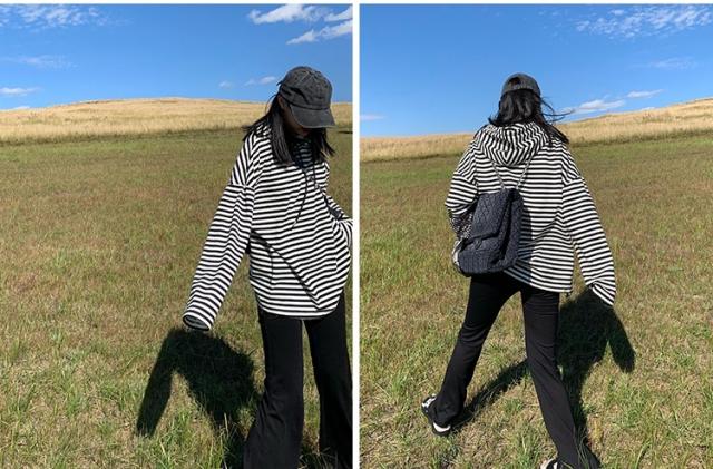ストライプ カットソー 長袖 フード付き レディース ボーダー 白黒 モノクロ フード 薄手 オールシーズン パーカー トップス 長袖 萌え袖 春 秋 冬 インナー ロング丈 ワイド 大きめ ゆったり 大きいサイズ かっこいい ボーイッシュ XL 2XL 20代 30代 40代 50代 体型カバー 細見え タイト スリム シンプル カジュアル 着回し かわいい 大人可愛い お洒落 オシャレ キュート ガーリー レトロ こなれ感 ラフ 個性的 個性派 クール とろみ