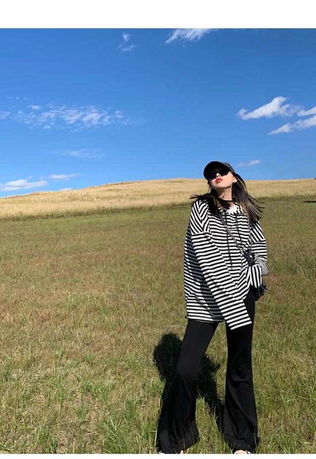 ストライプ カットソー 長袖 フード付き レディース ボーダー 白黒 モノクロ フード 薄手 オールシーズン パーカー トップス 長袖 萌え袖 春 秋 冬 インナー ロング丈 ワイド 大きめ ゆったり 大きいサイズ かっこいい ボーイッシュ XL 2XL 20代 30代 40代 50代 体型カバー