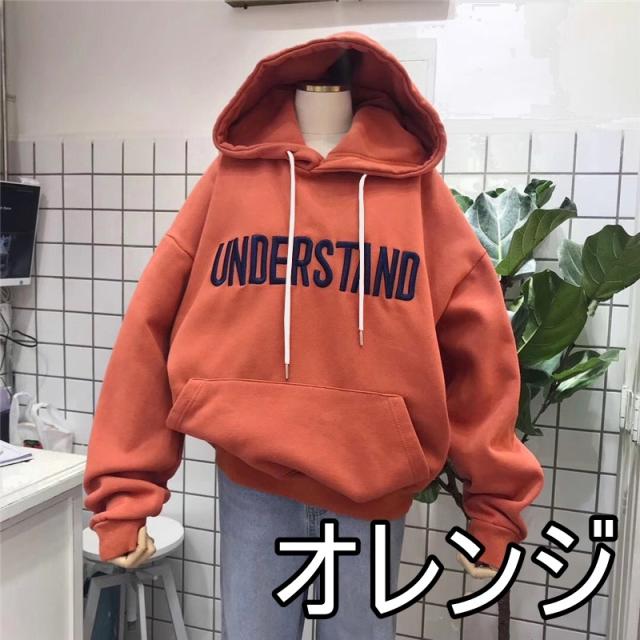 パーカー 4色 オーバーサイズ レディース フード付き 大きめ 大きいサイズ XL 2XL ゆったり 体型カバー 長袖 萌え袖 くすみカラー フード シンプル ロゴ カジュアル ラフ ポケット クール ボーイッシュ メンズライク かっこいい 青 ブルー 水色 ピンク オレンジ 黒 オシャレ お洒落 冬 秋 暖かい 20代 30代 40代 かわいい 大人可愛いスポーティー こなれ感 ルーズ ストレート ワイド